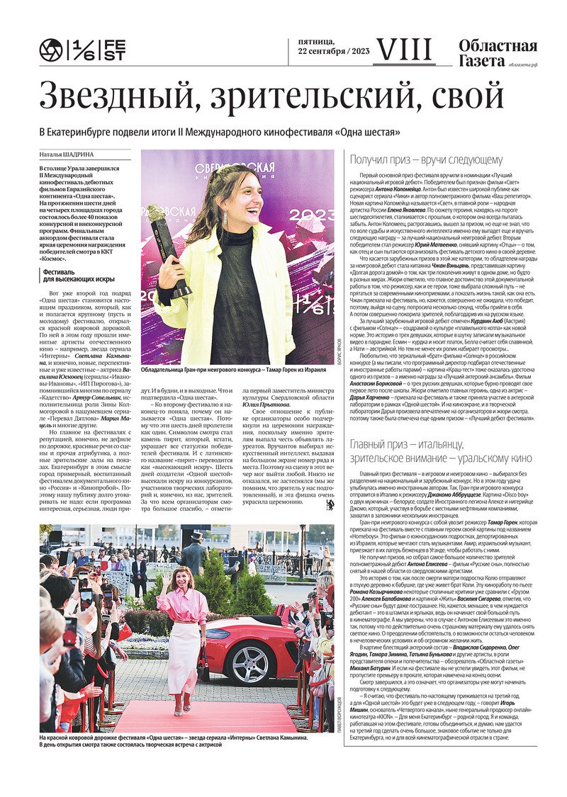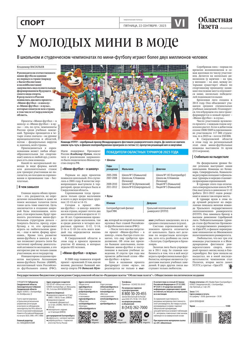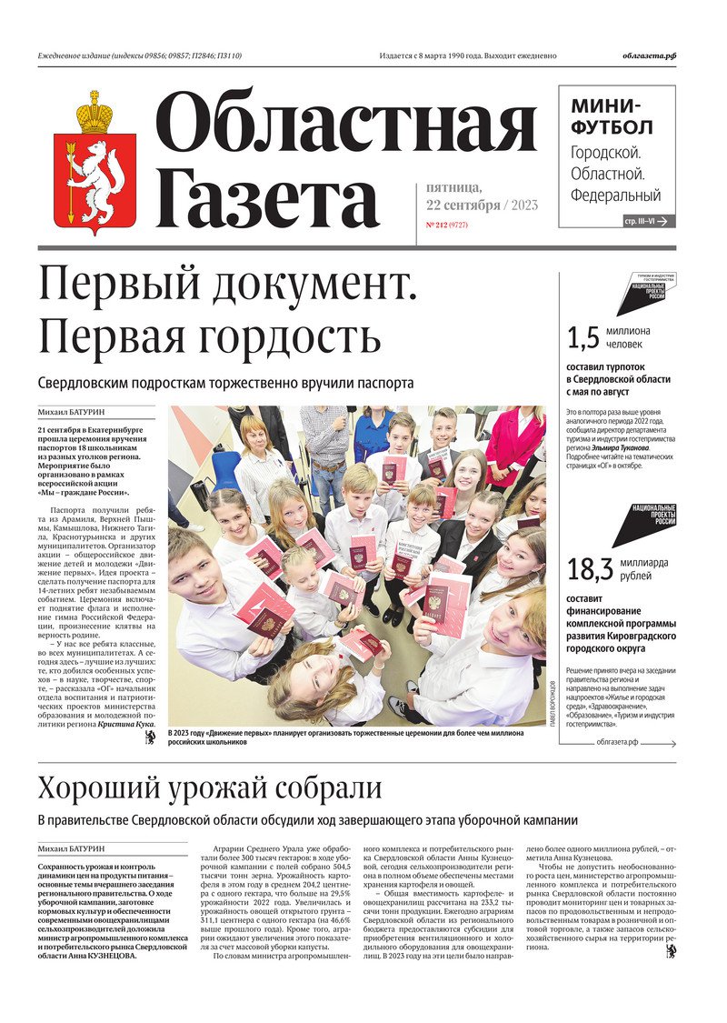 «Областная газета» № 212 (9727) от 22 сентября 2023 года