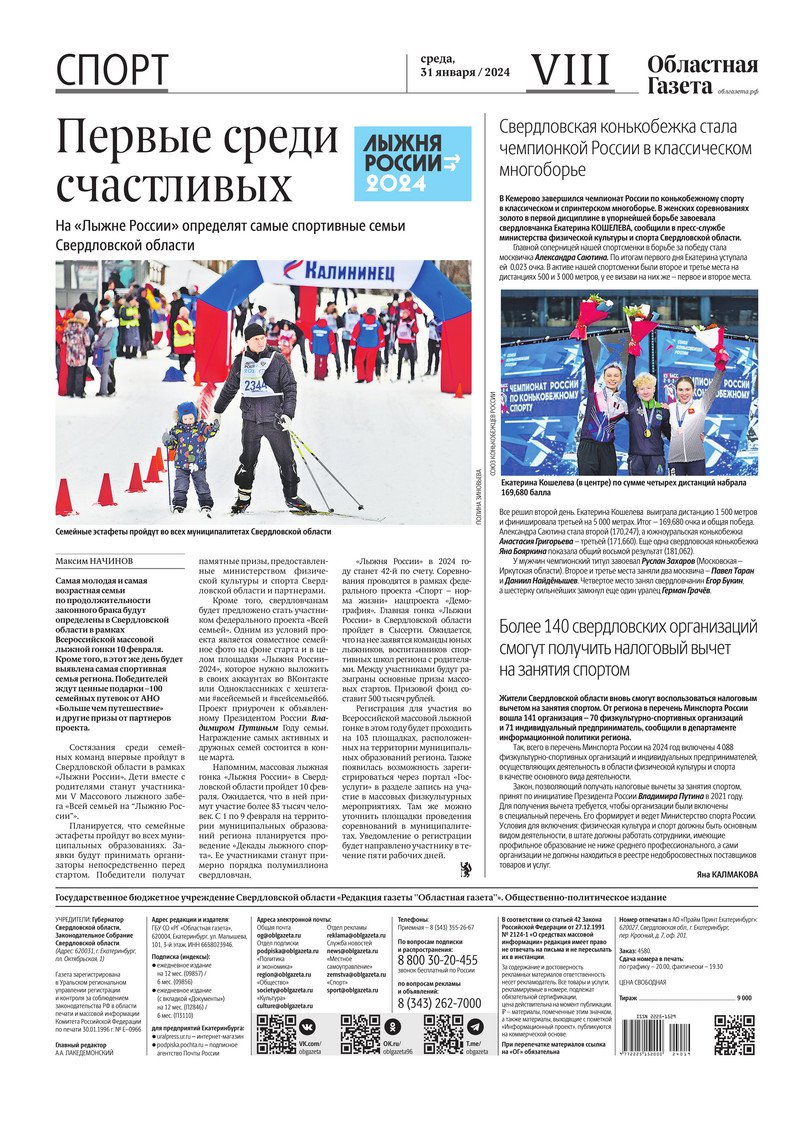 «Областная газета» № 19 (9830) от 31 января 2024 года