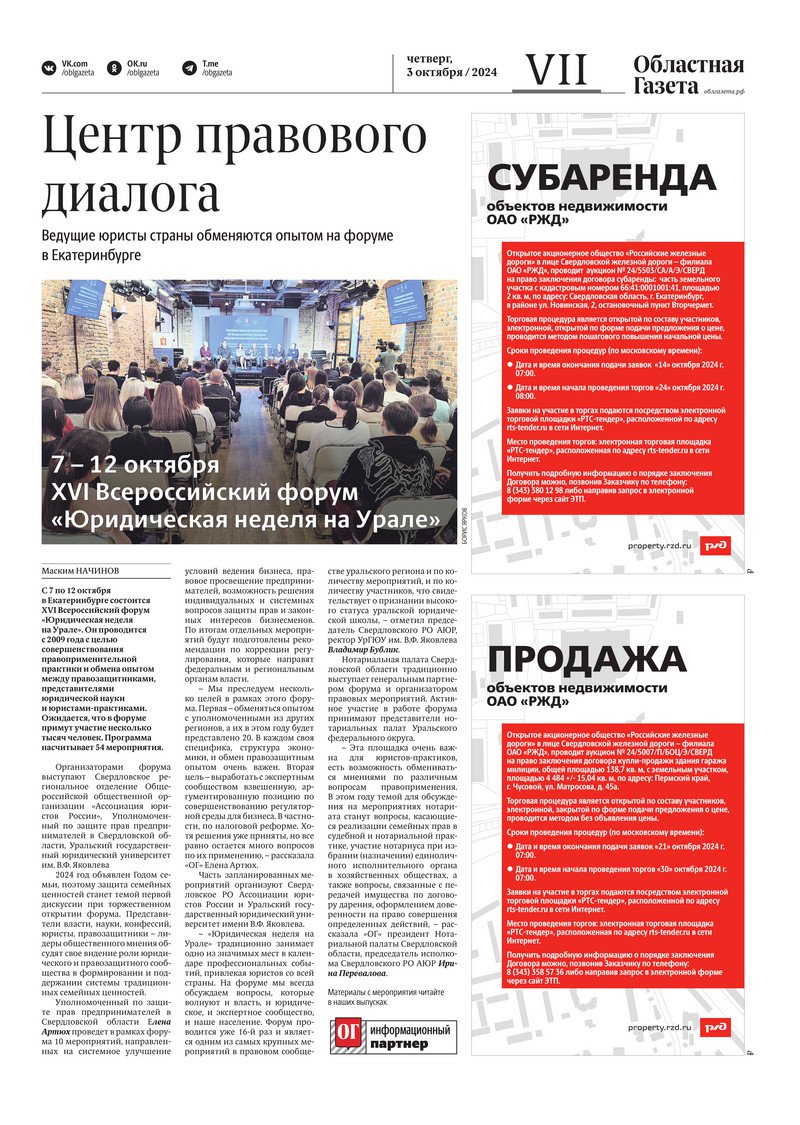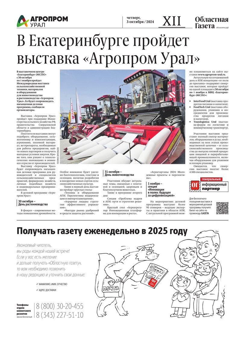 «Областная газета» № 221 (10032) от 3 октября 2024 года