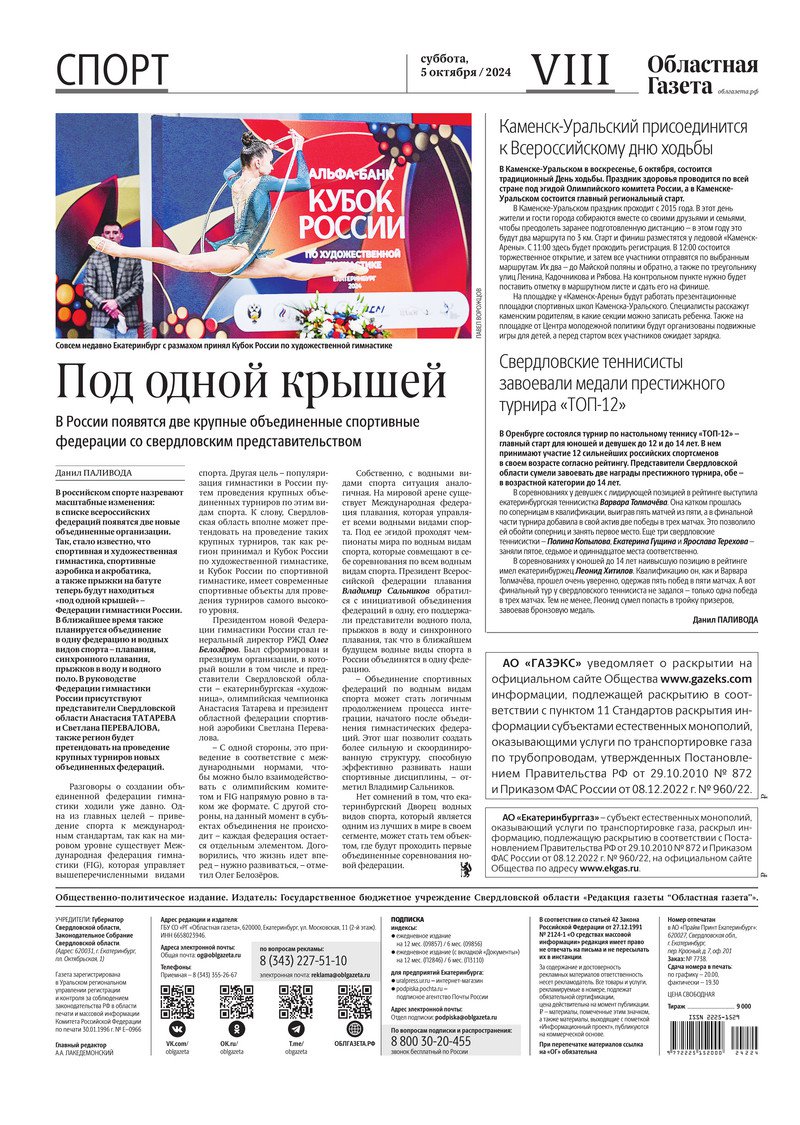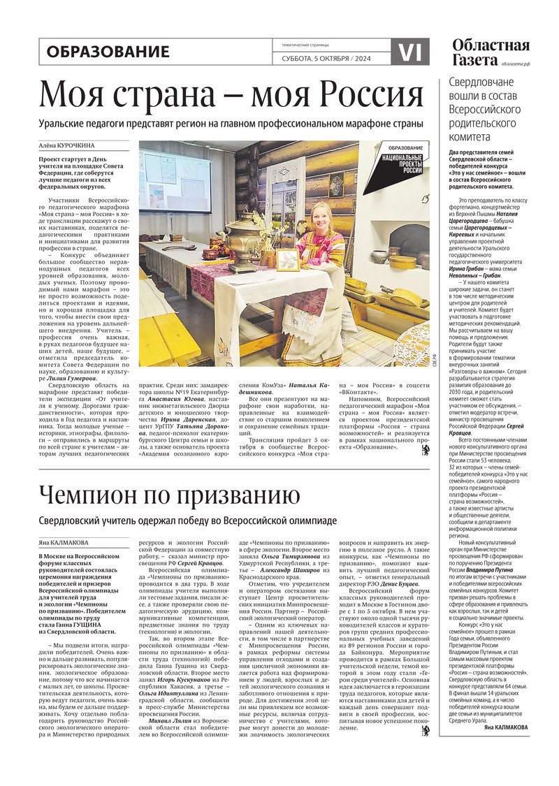 «Областная газета» № 224 (10035) от 5 октября 2024 года