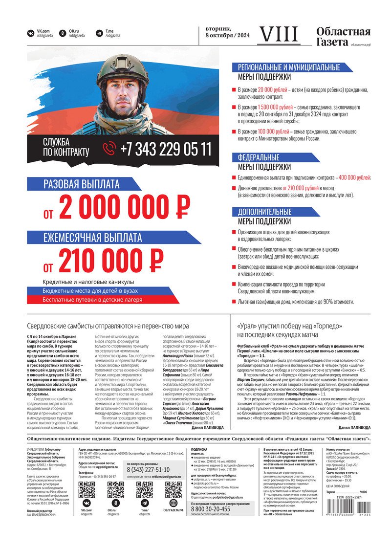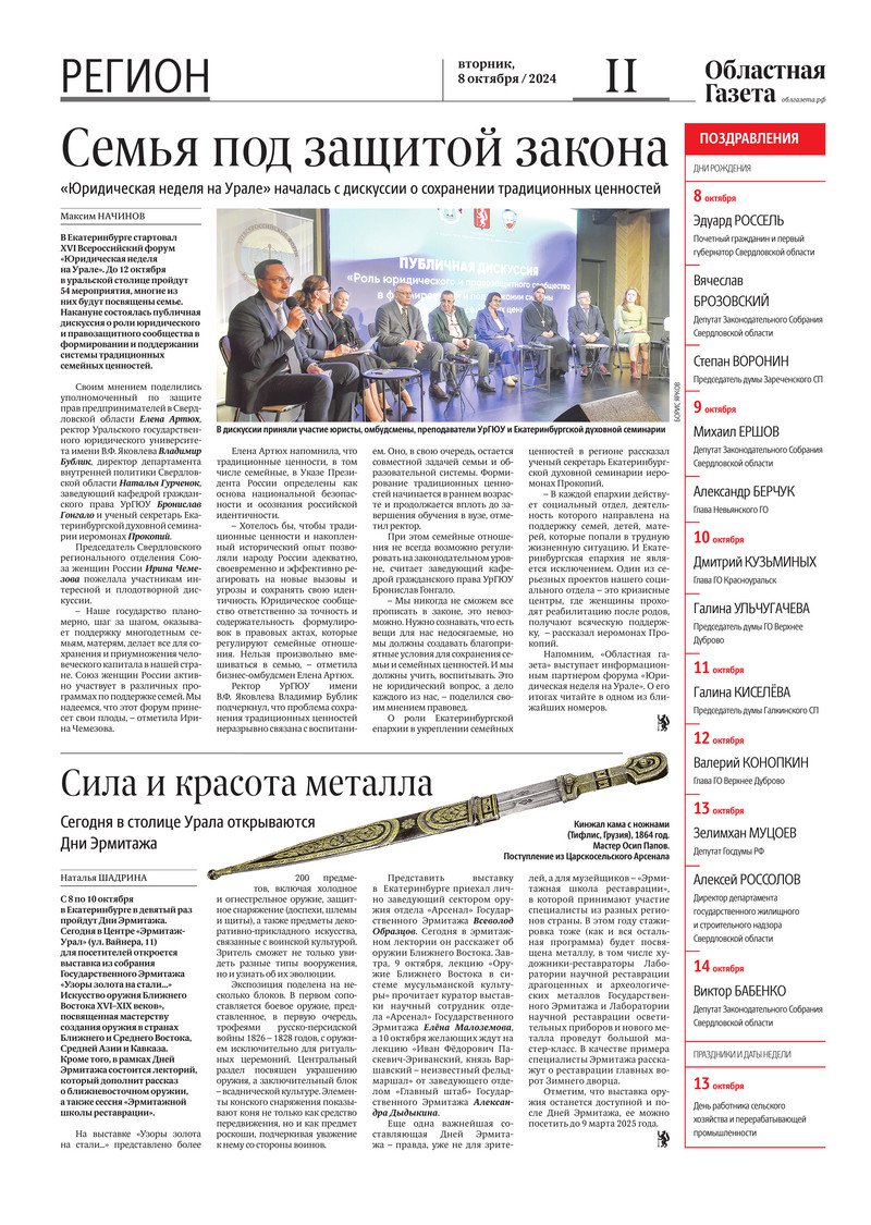 «Областная газета» № 225 (10036) от 8 октября 2024 года