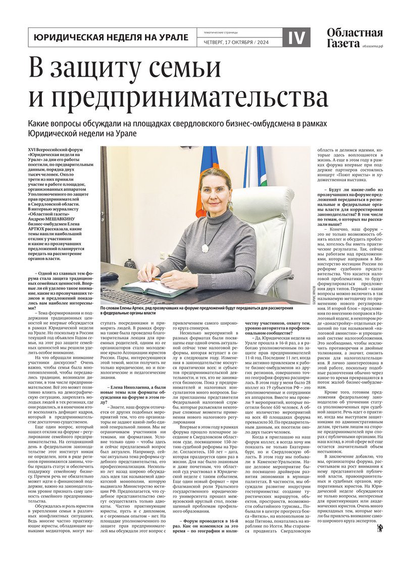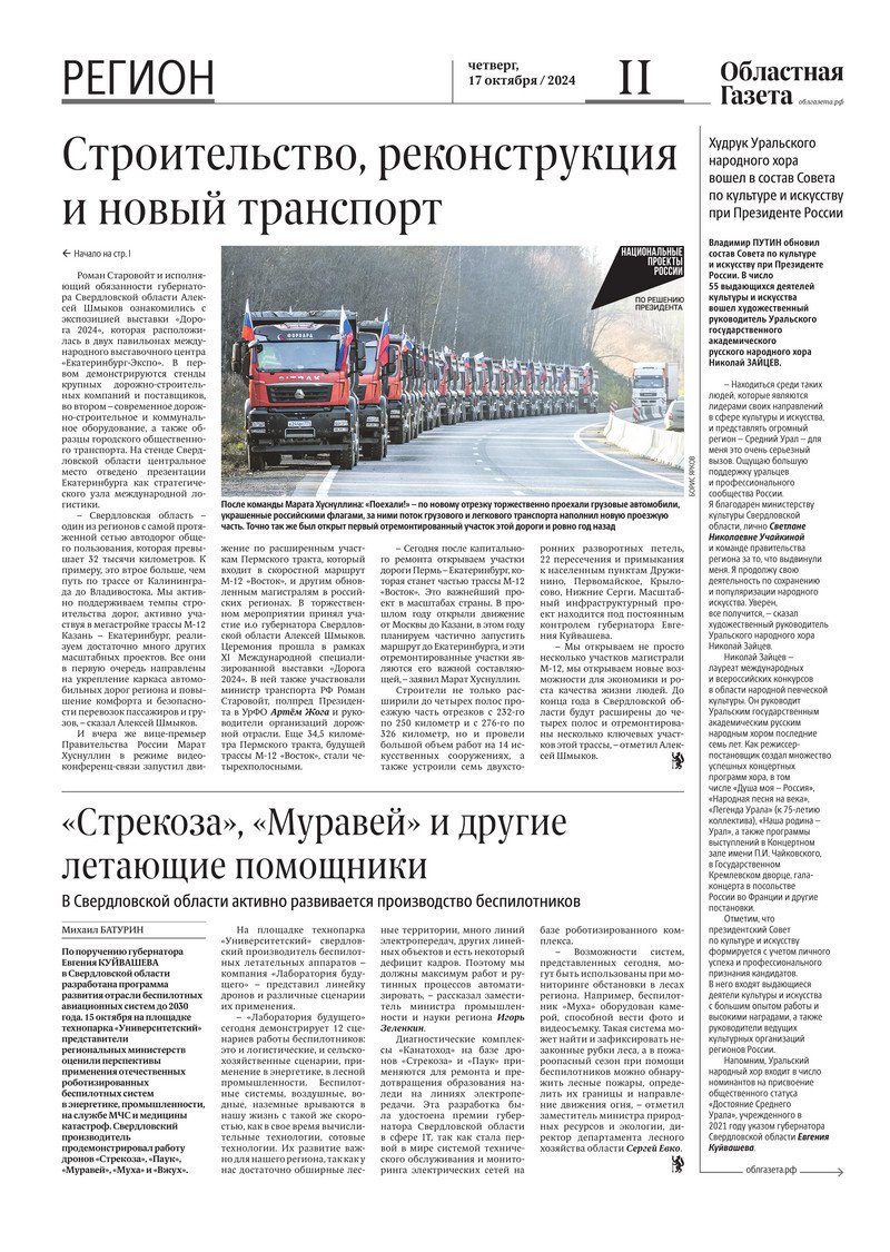 «Областная газета» № 233 (10044) от 17 октября 2024 года
