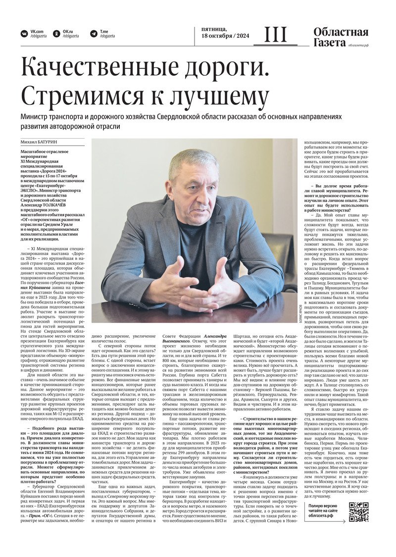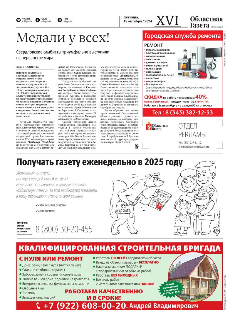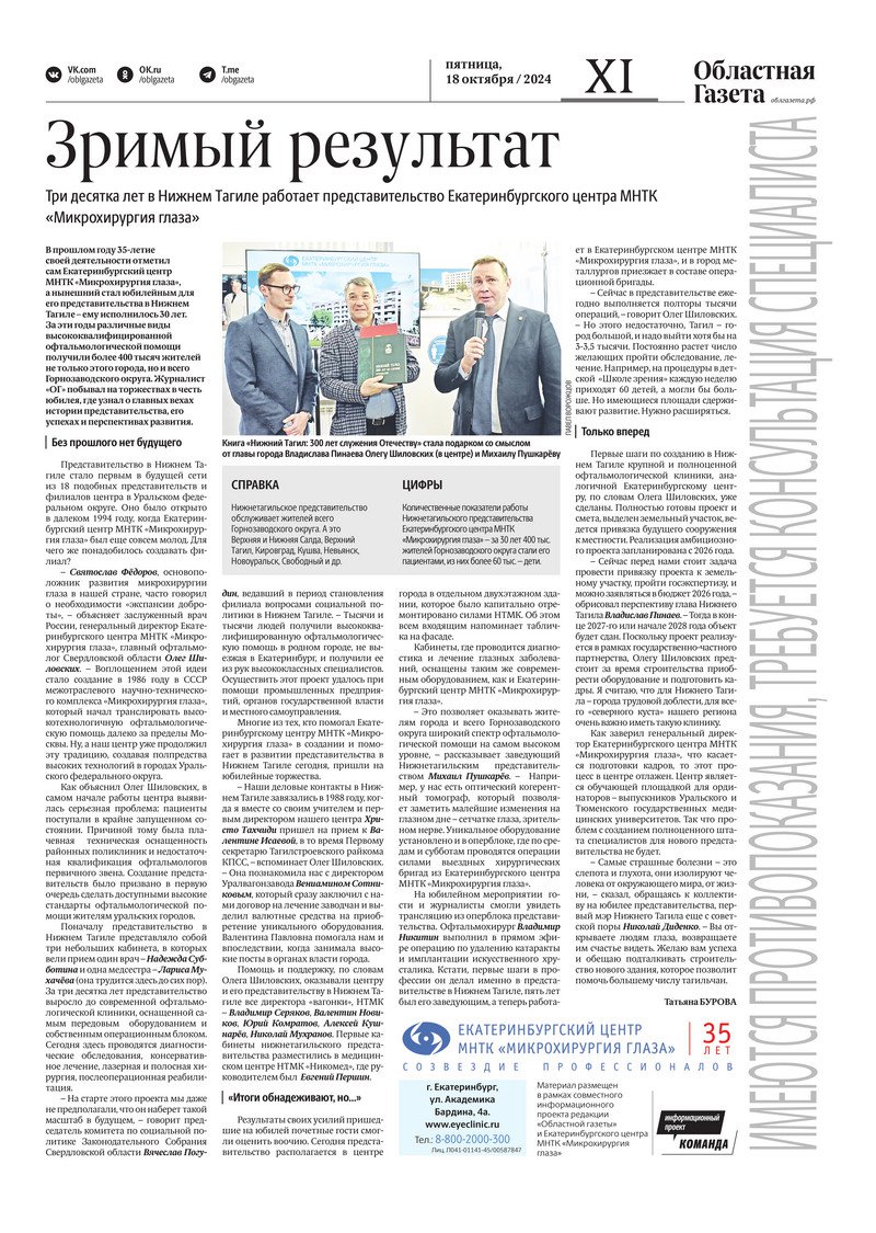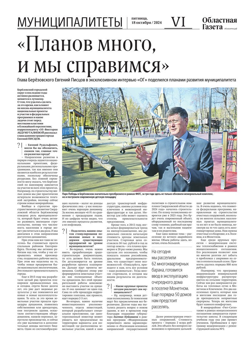 «Областная газета» № 235 (10046) от 17 октября 2024 года