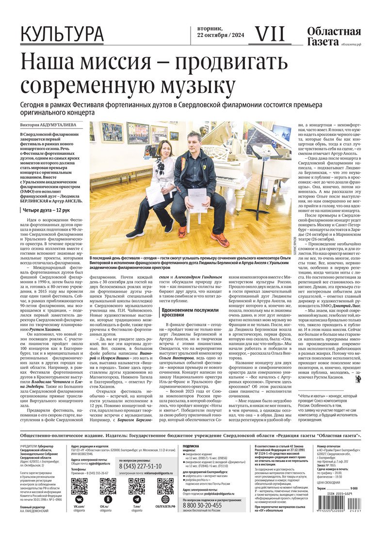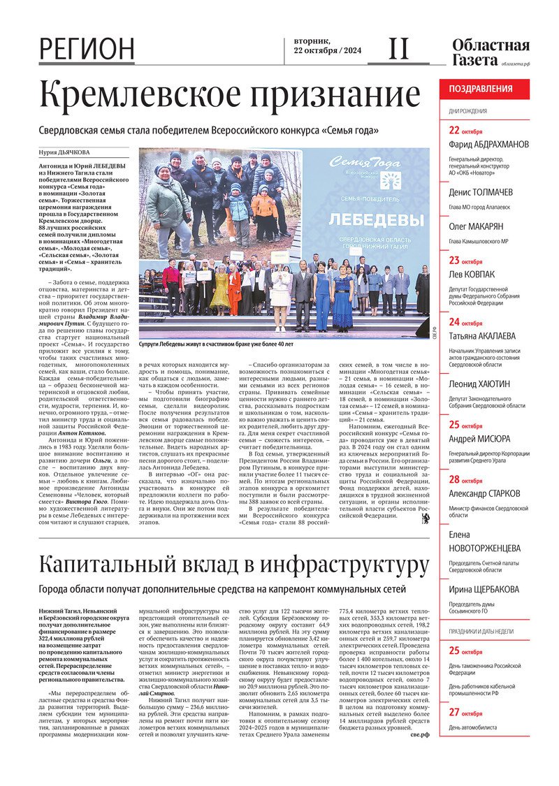 «Областная газета» № 237 (10048) от 22 октября 2024 года