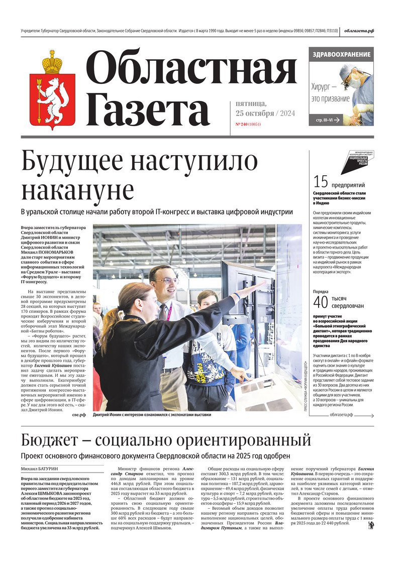 «Областная газета» № 240 (10051) от 25 октября 2024 года