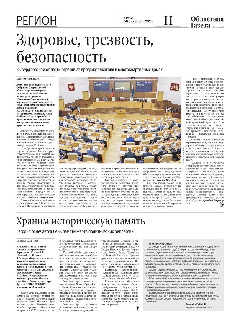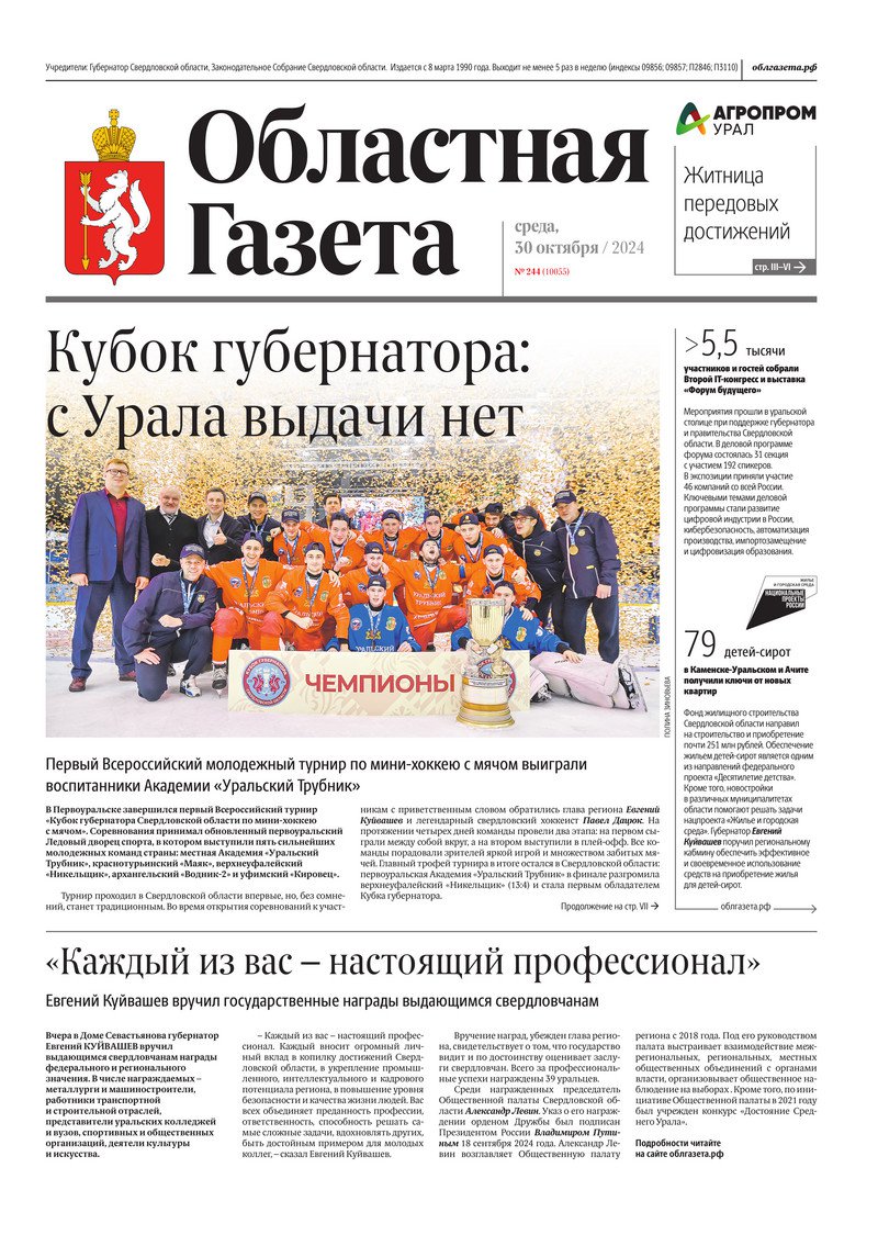 «Областная газета» № 244 (10055) от 30 октября 2024 года