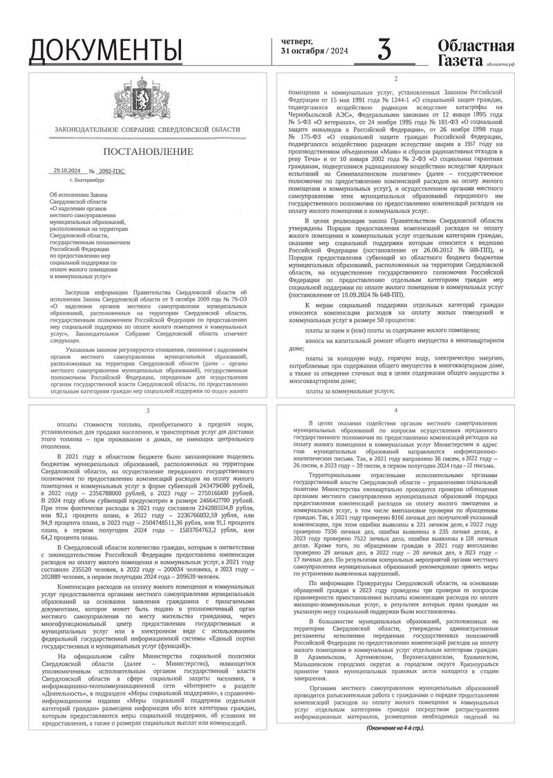 «Областная газета» № 245 (10056) от 31 октября 2024 года