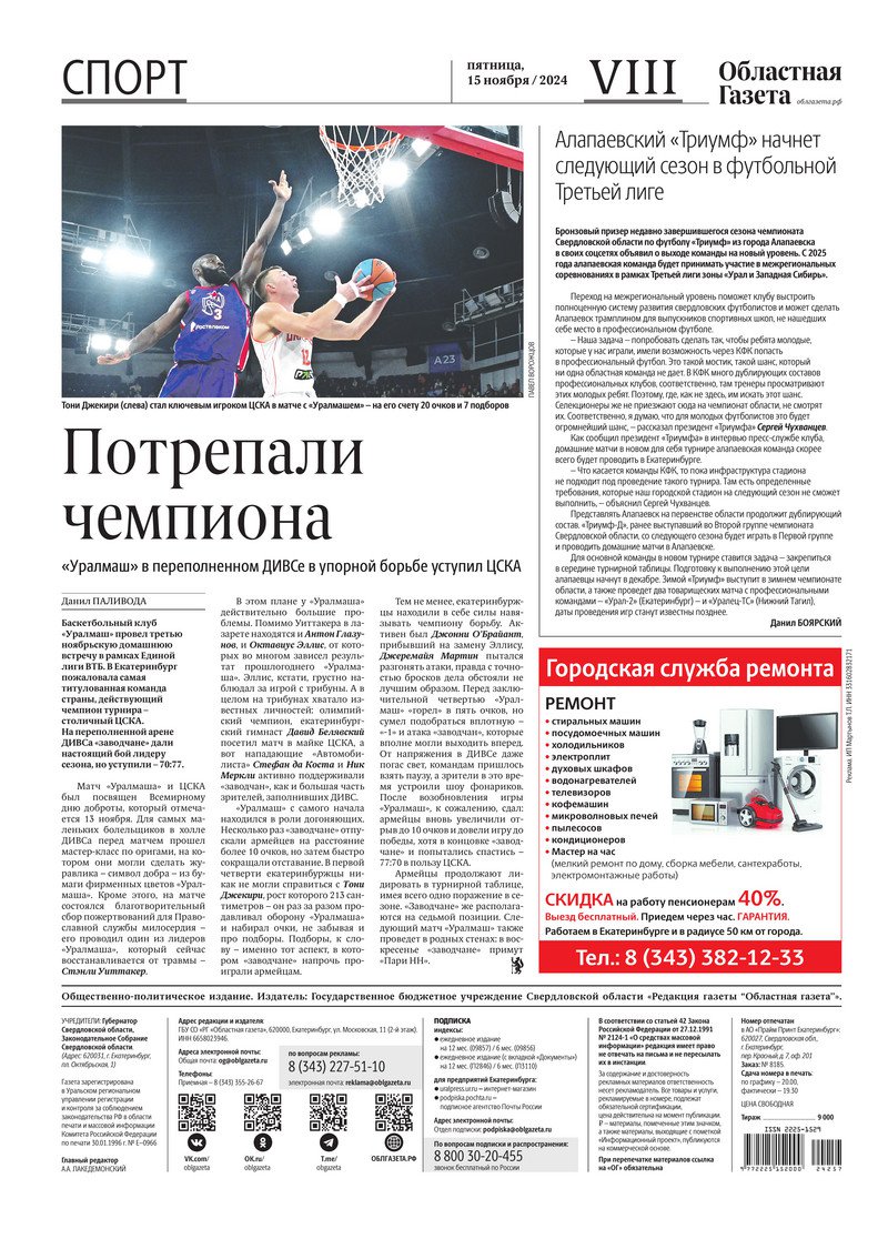 «Областная газета» № 257 (10068) от 15 ноября 2024 года