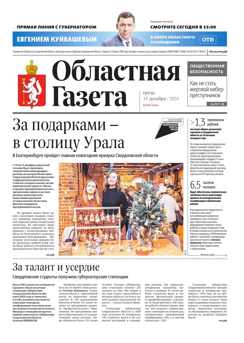 «Областная газета» № 279 (10090) от 11 декабря 2024 года