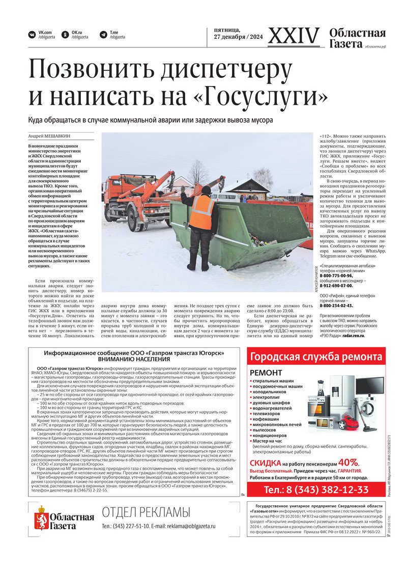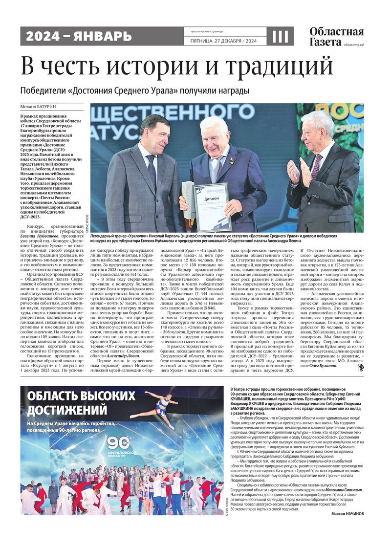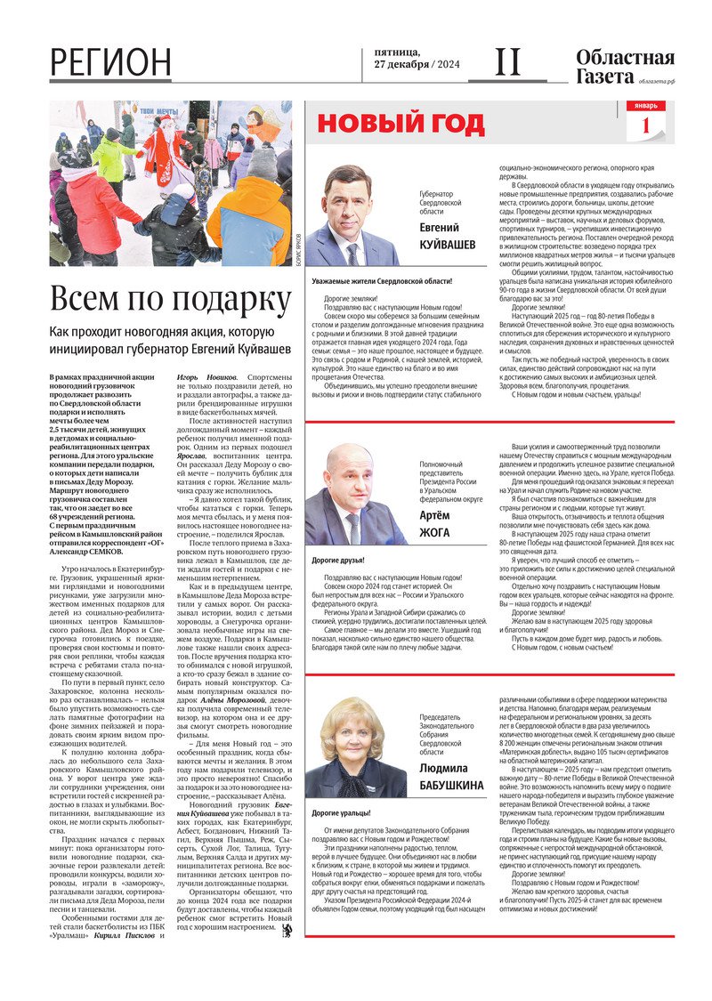 «Областная газета» № 294 (10105) от 26 декабря 2024 года