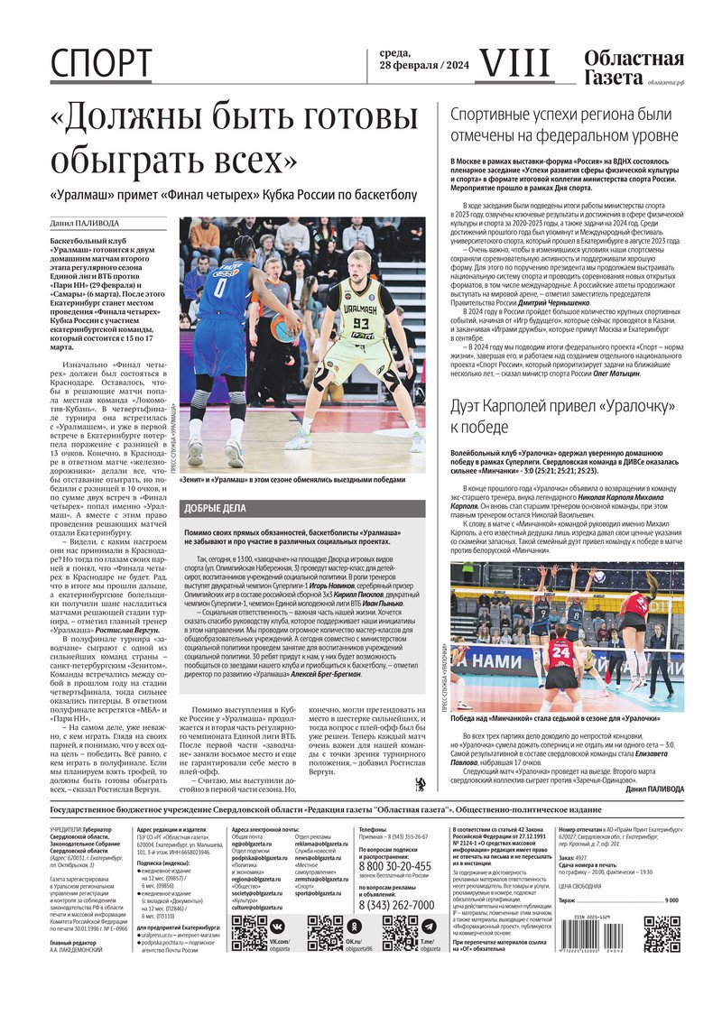«Областная газета» № 42 (9853) от 28 февраля 2024 года
