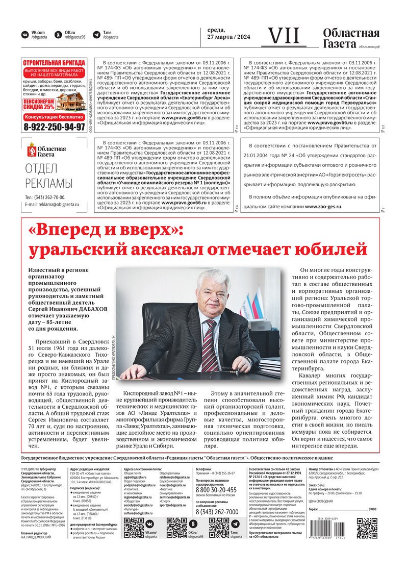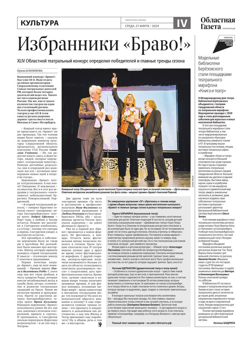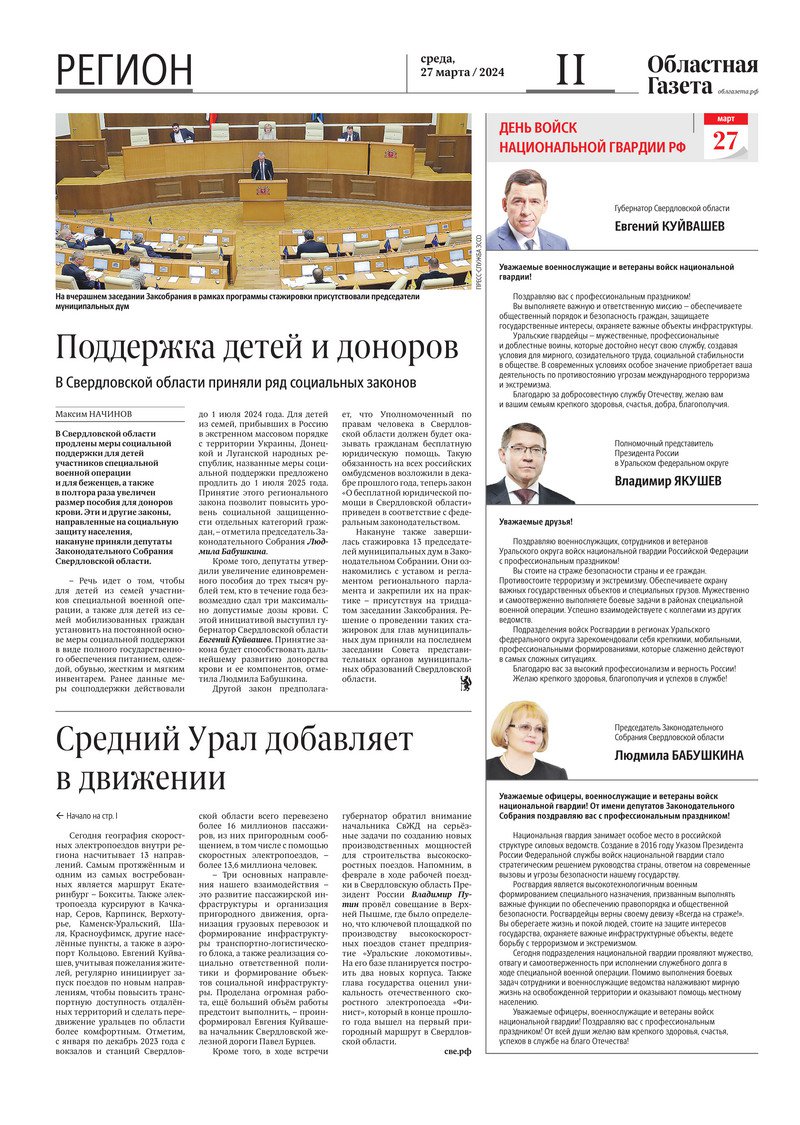 «Областная газета» № 65 (9876) от 27 марта 2024 года