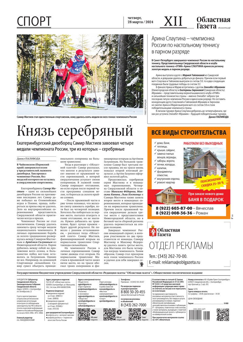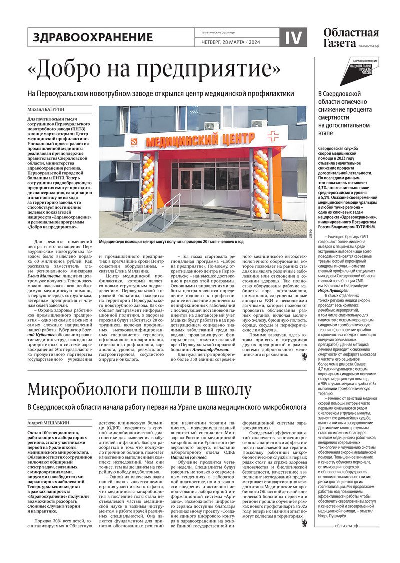 «Областная газета» № 66 (9877) от 28 марта 2024 года