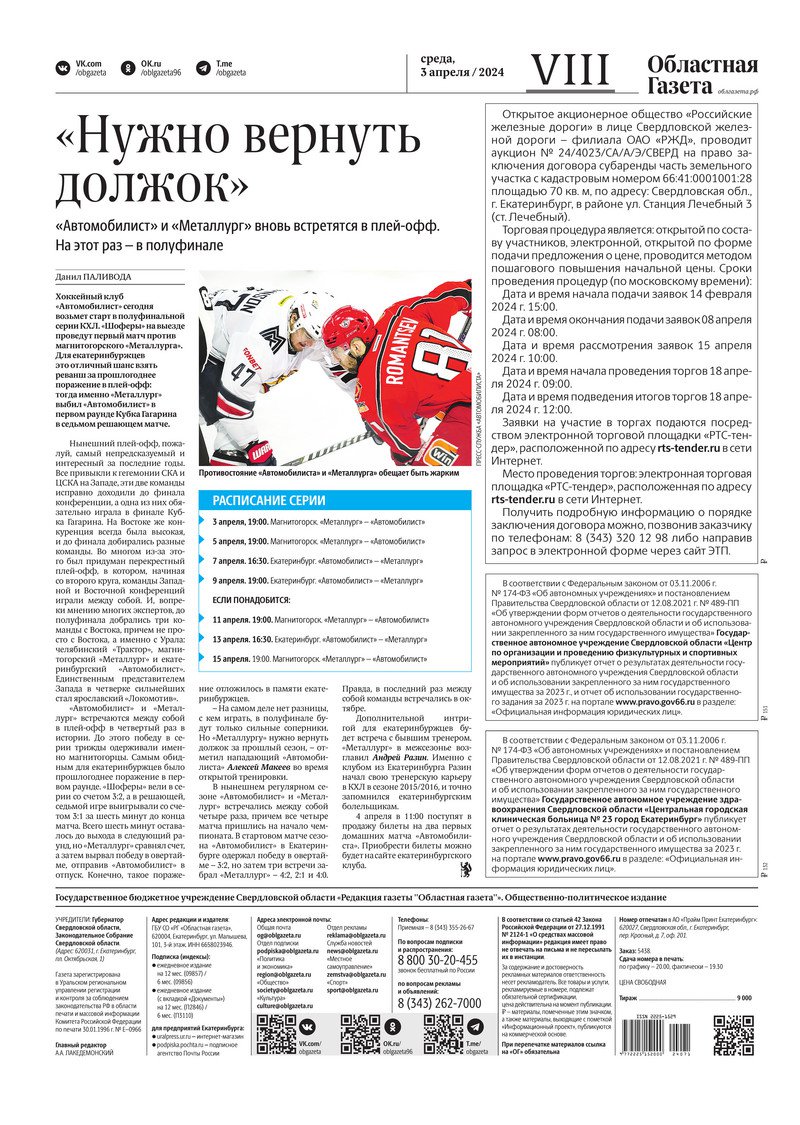 «Областная газета» № 71 (9882) от 3 апреля 2024 года