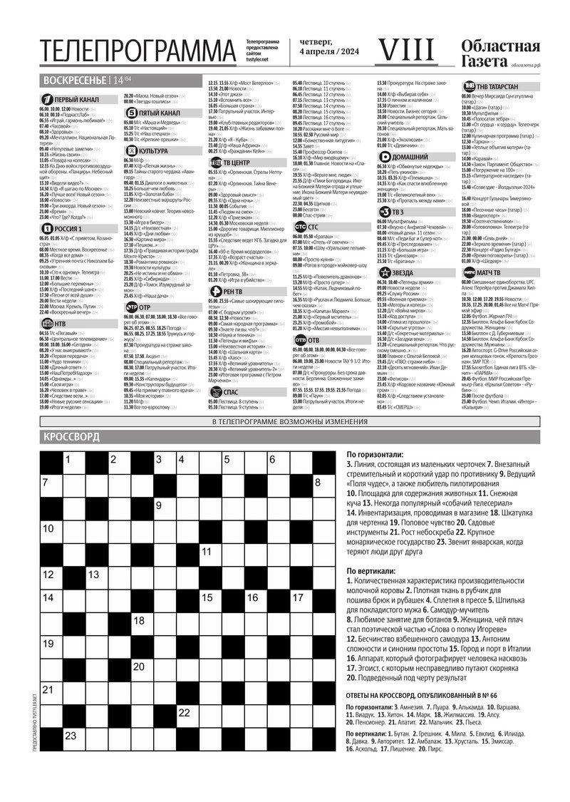 «Областная газета» № 72 (9883) от 4 апреля 2024 года