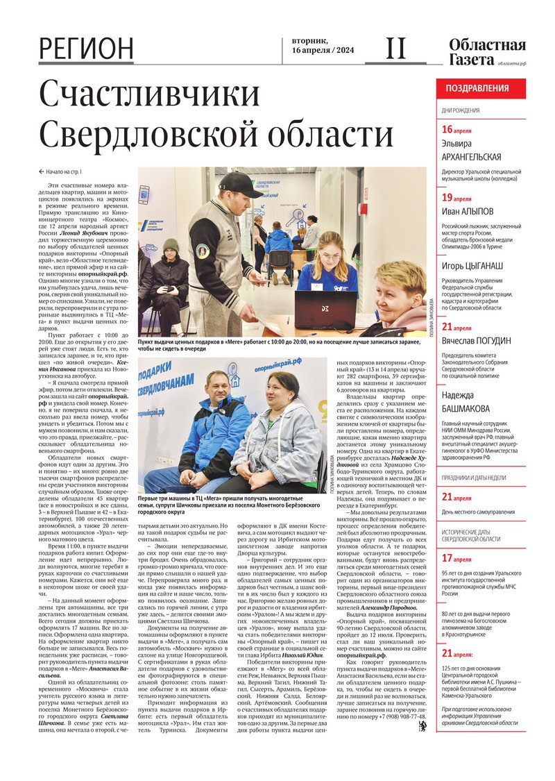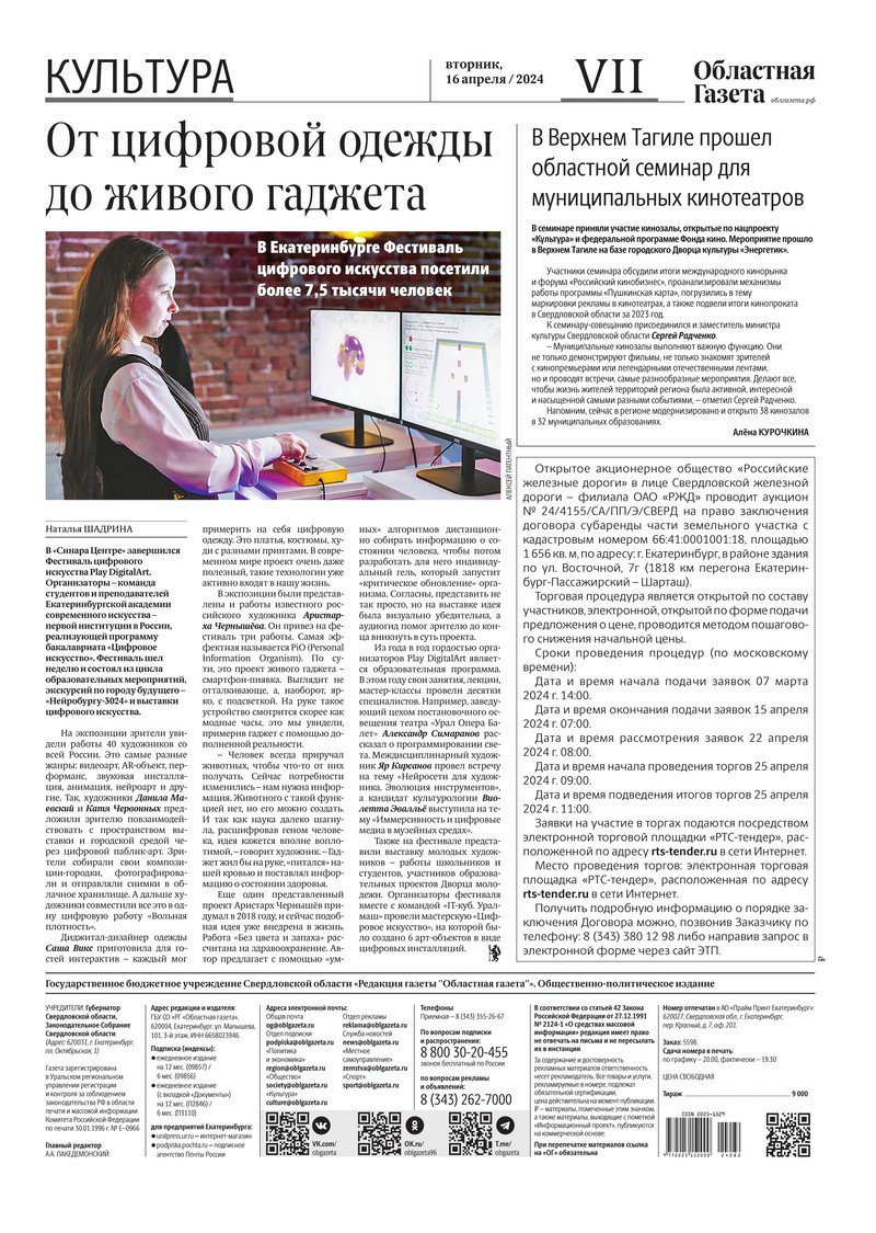 «Областная газета» № 82 (9893) от 16 апреля 2024 года