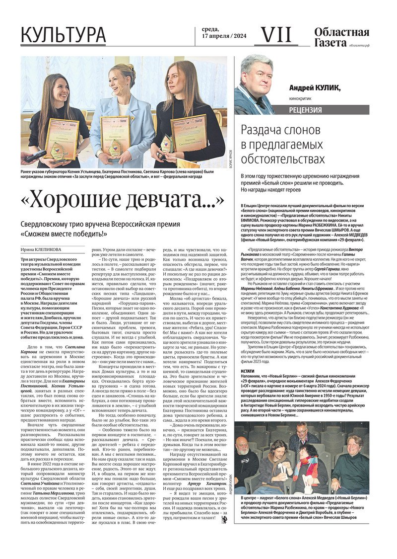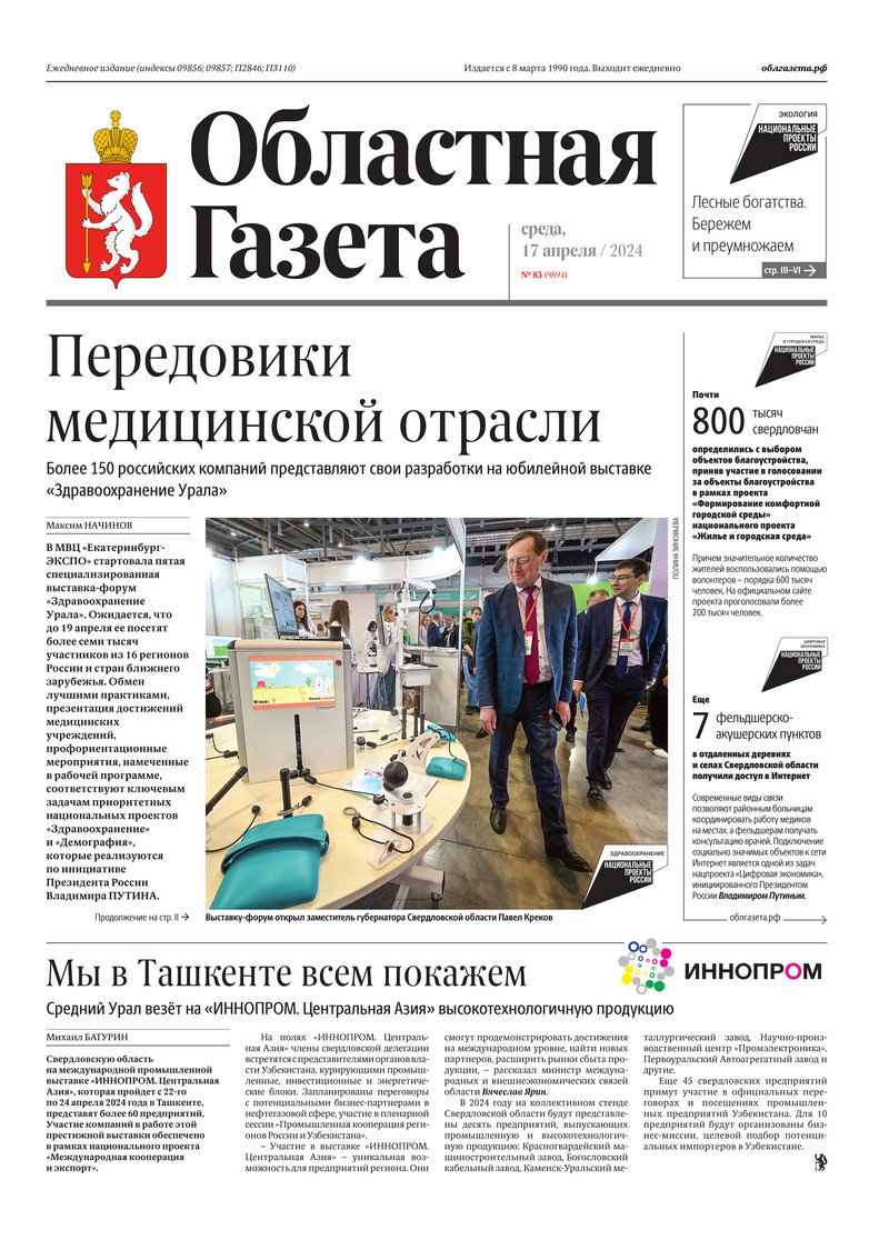«Областная газета» № 83 (9894) от 17 апреля 2024 года