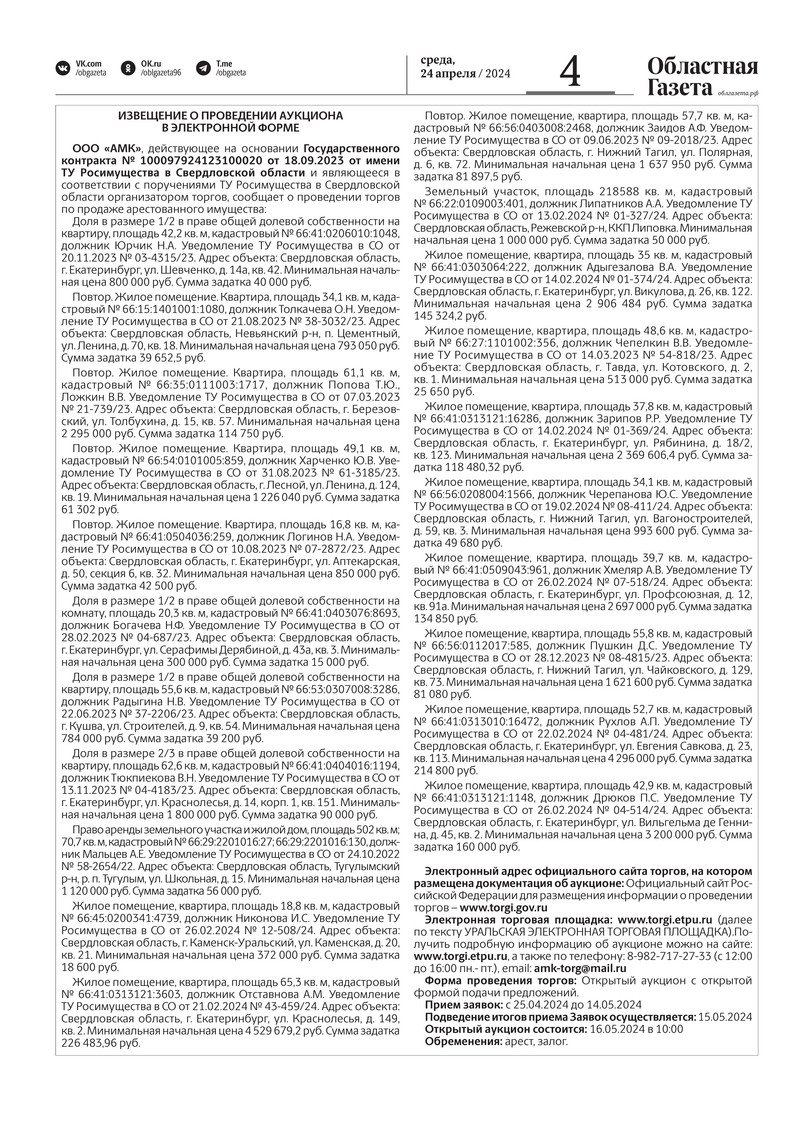 «Областная газета» № 89 (9900) от 24 апреля 2024 года
