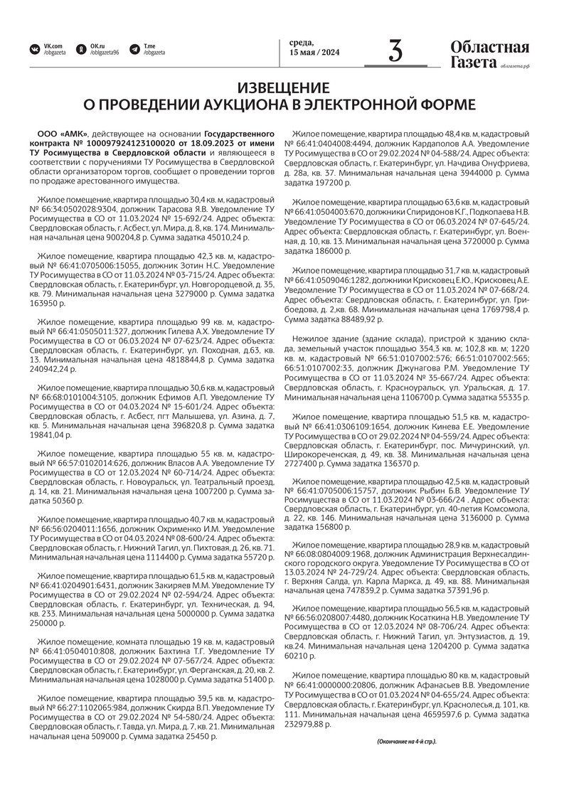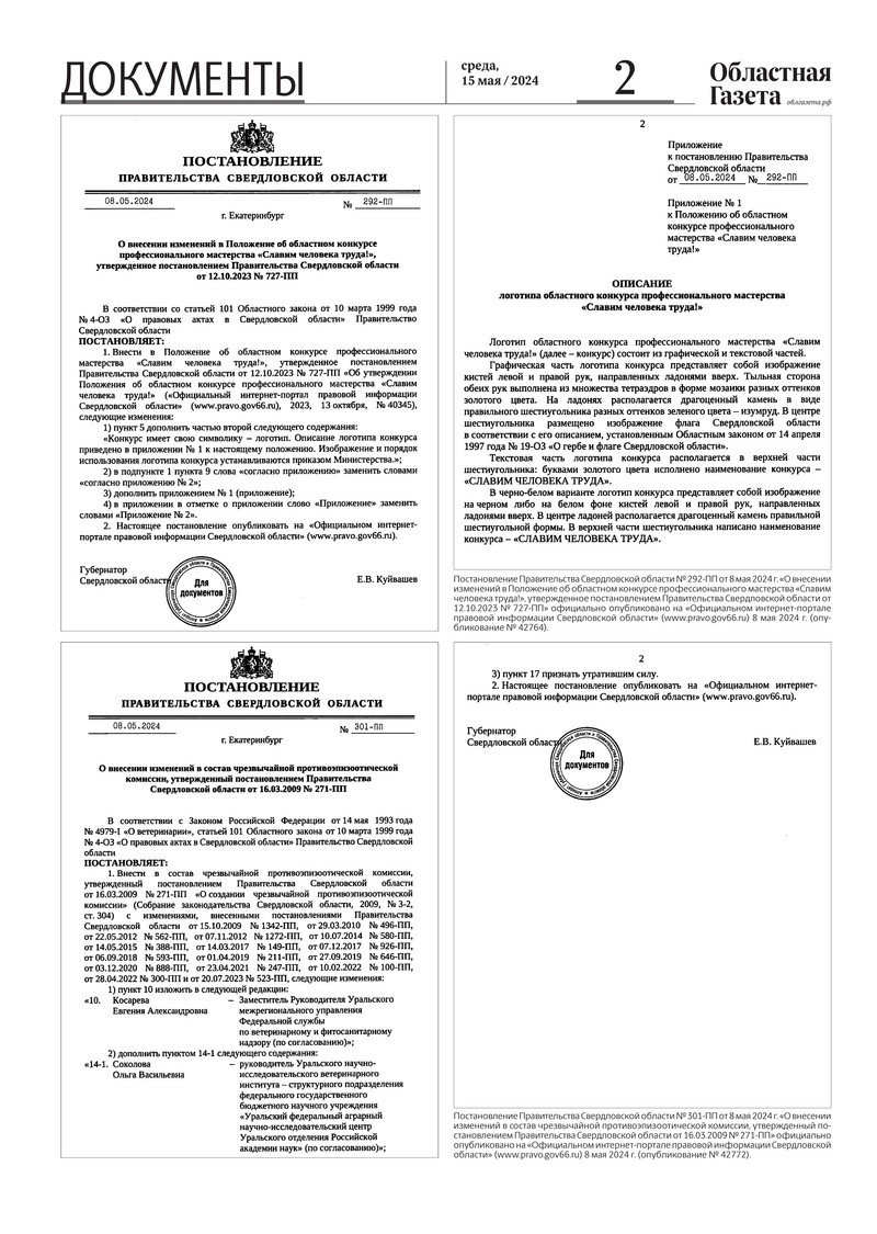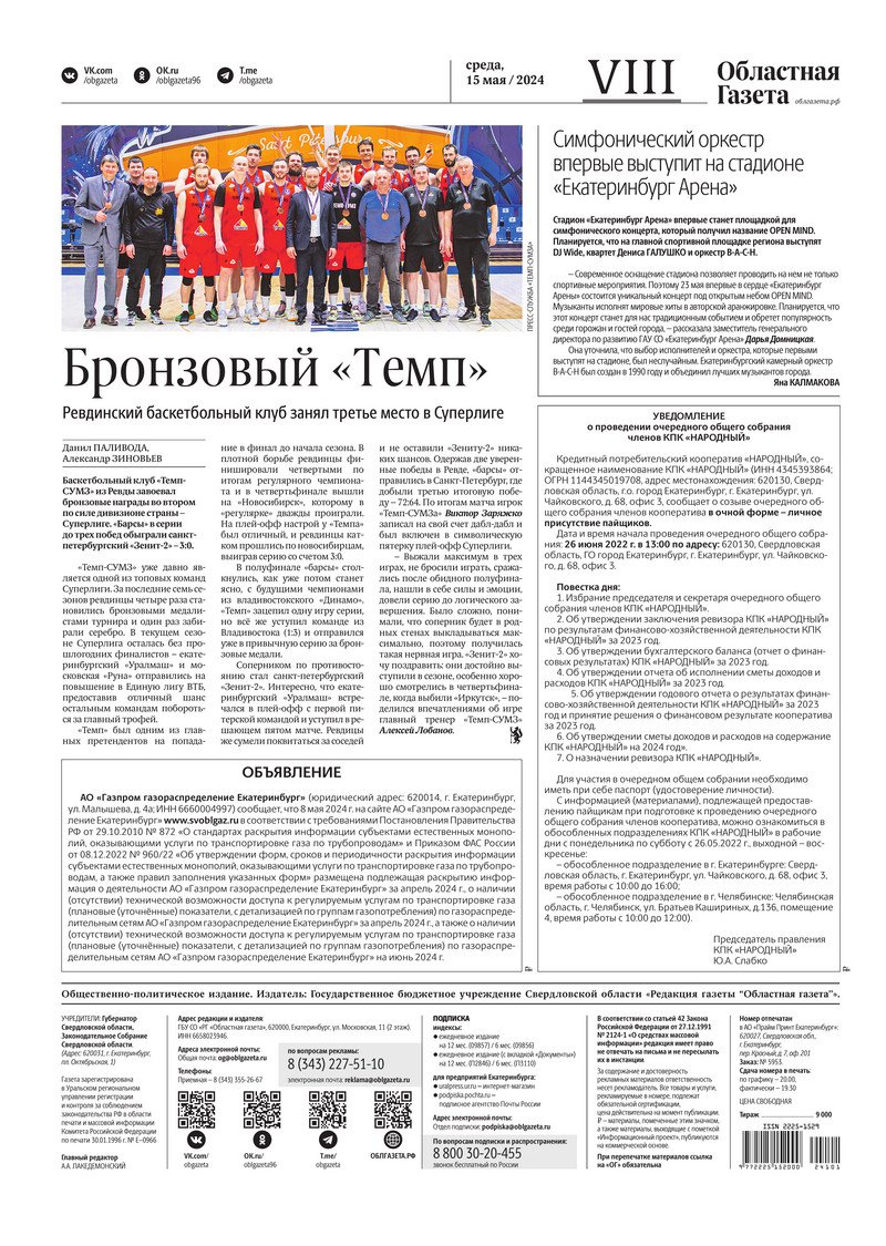 «Областная газета» № 101 (9912) от 15 мая 2024 года