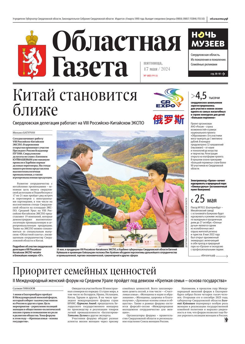 «Областная газета» № 103 (9914) от 17 мая 2024 года