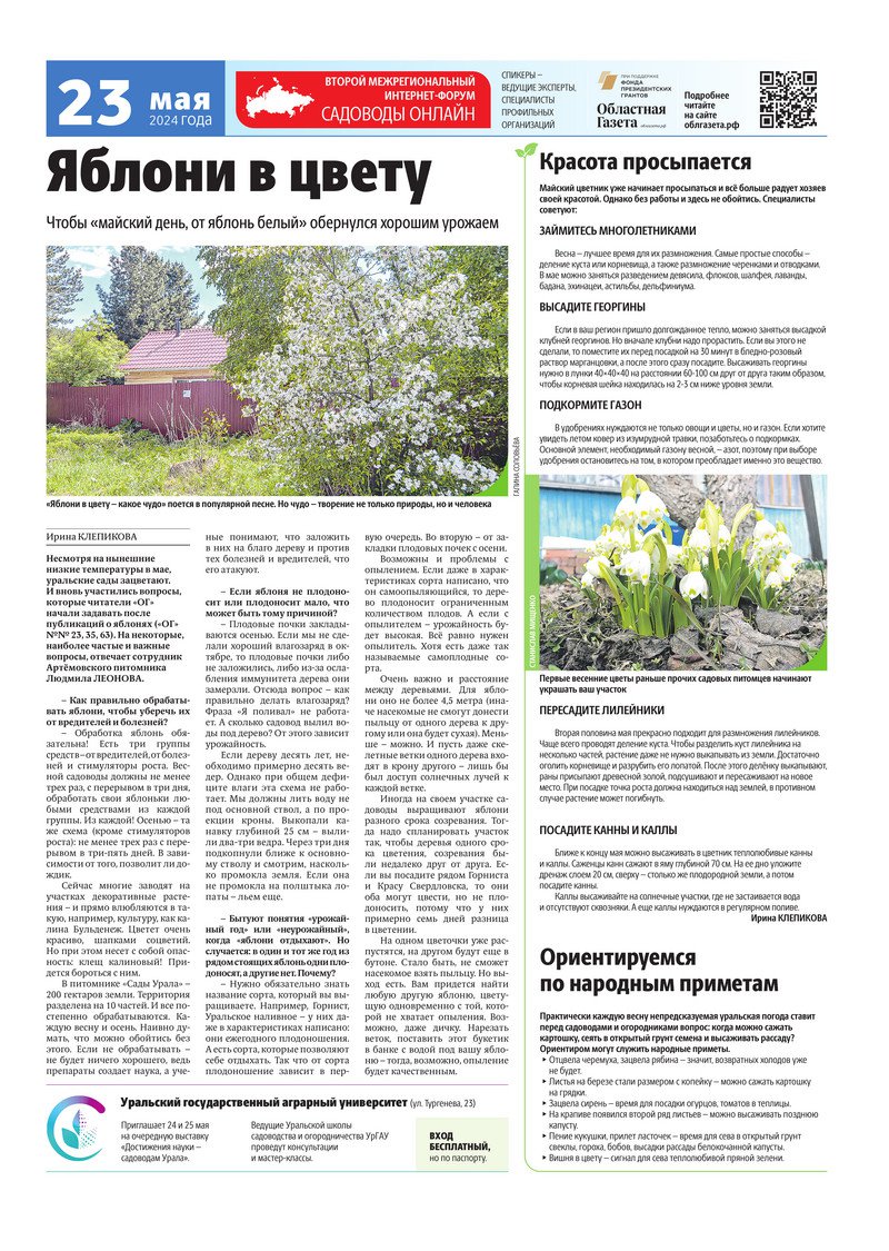 «Областная газета» № 105 (9916) от 18 мая 2024 года