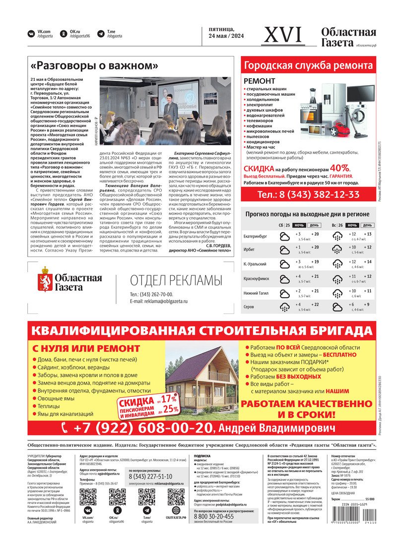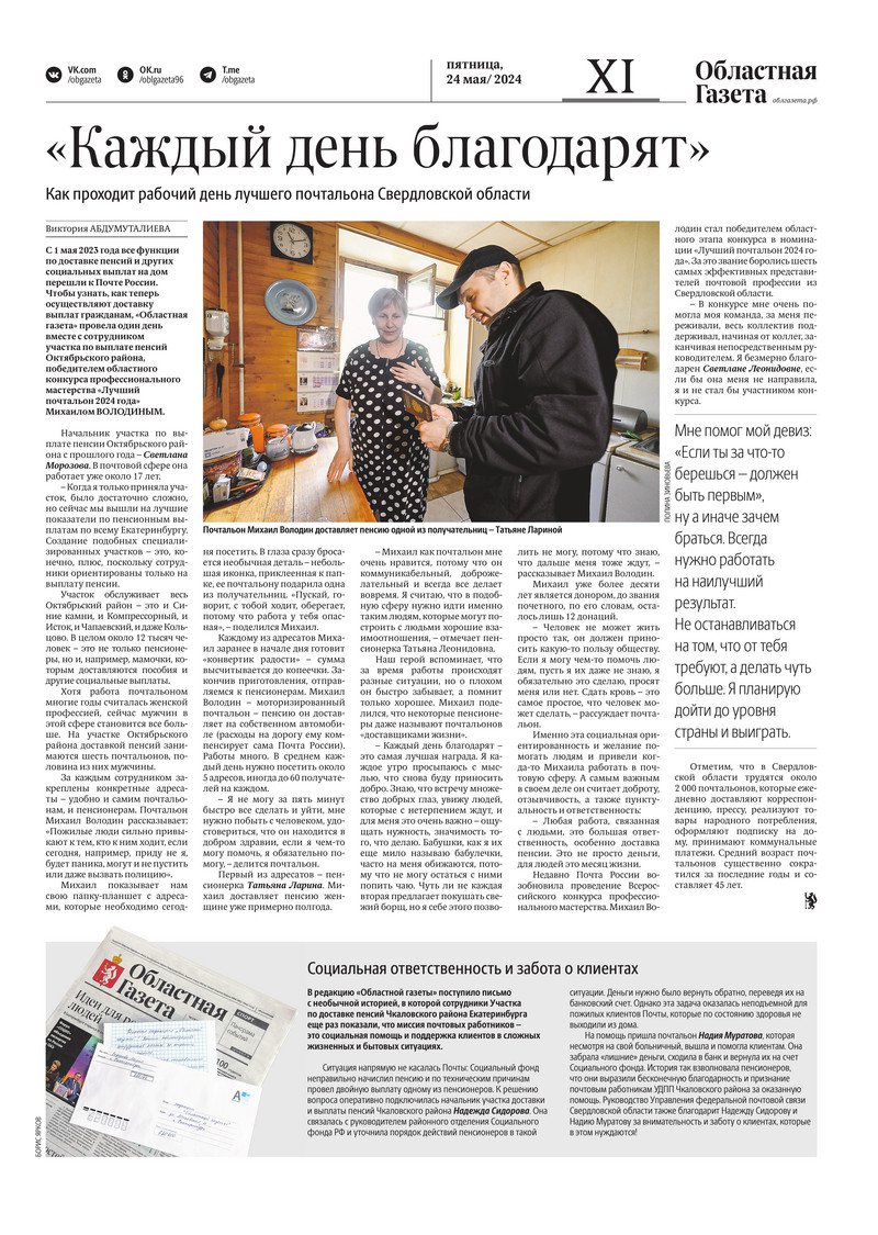 «Областная газета» № 110 (9921) от 23 мая 2024 года