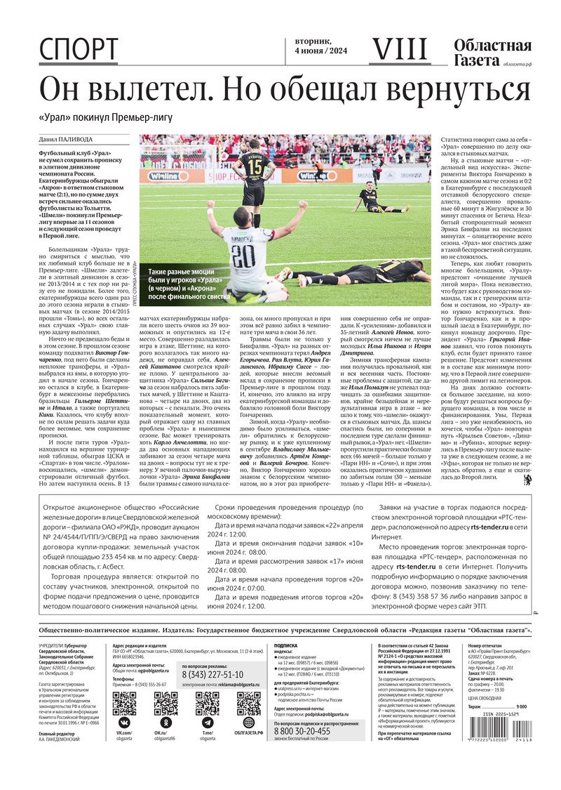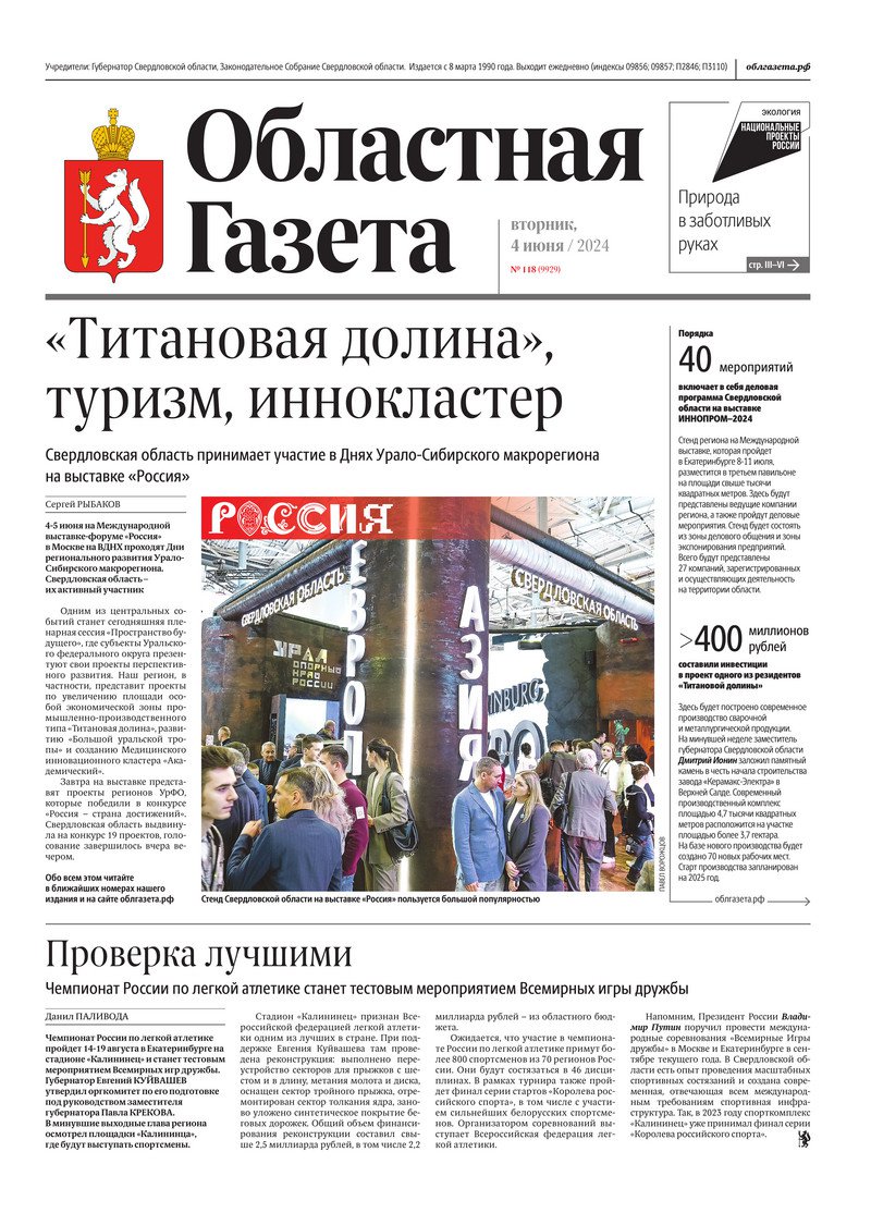 «Областная газета» № 118 (9929) от 4 июня 2024 года