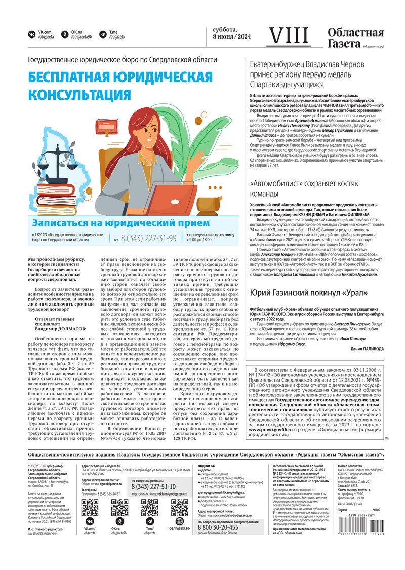 «Областная газета» № 123 (9934) от 8 июня 2024 года