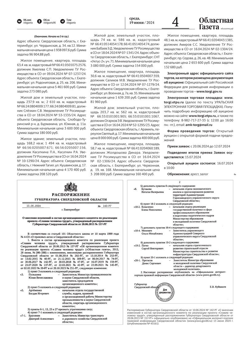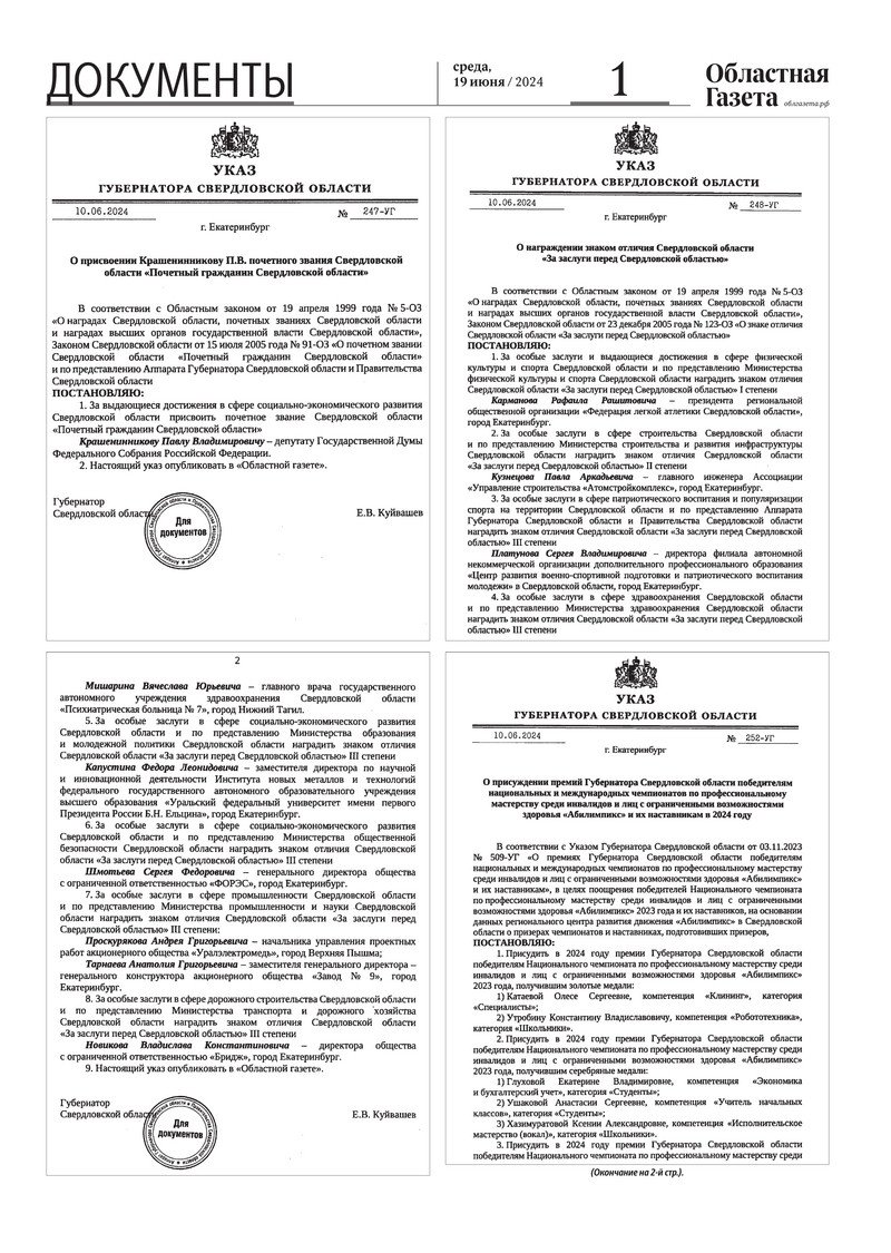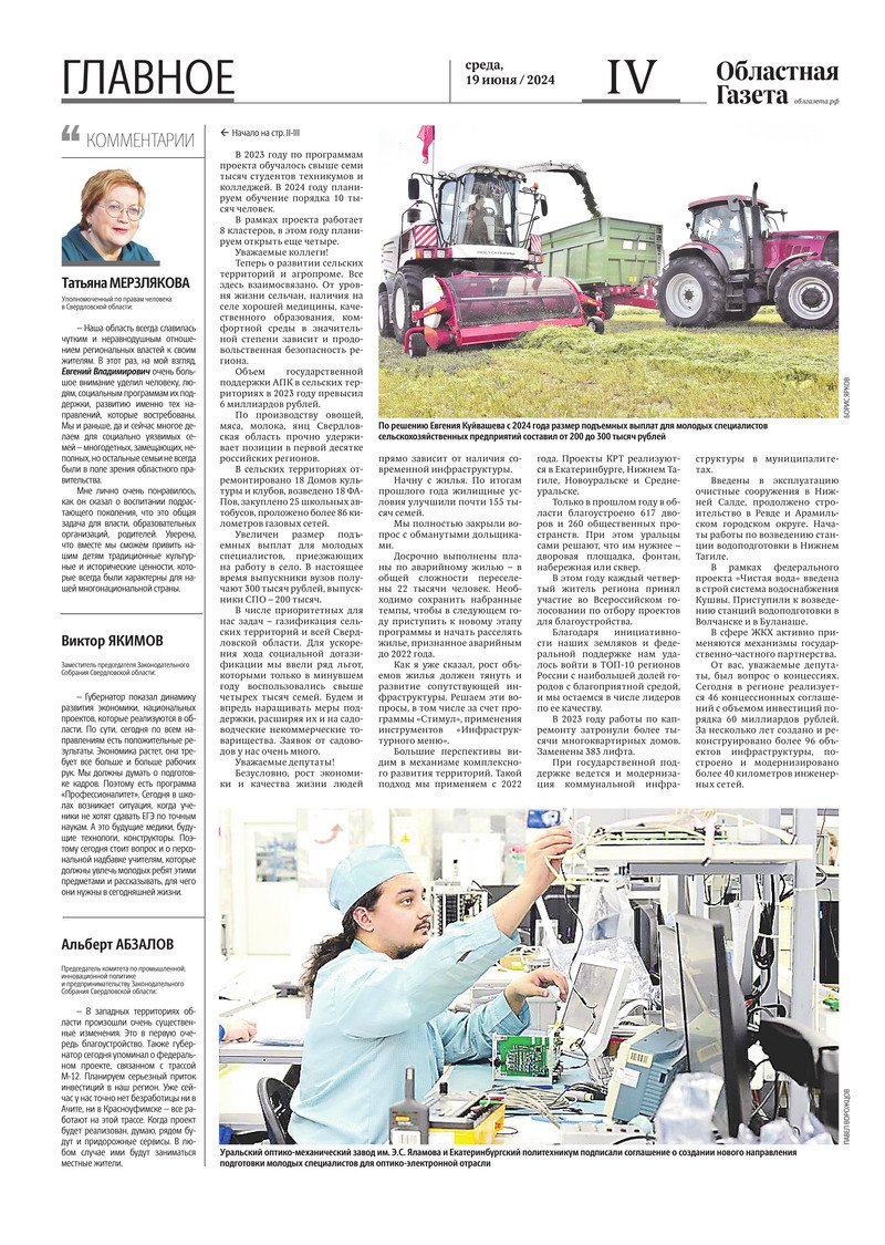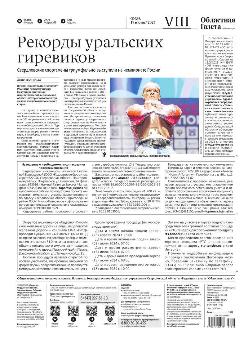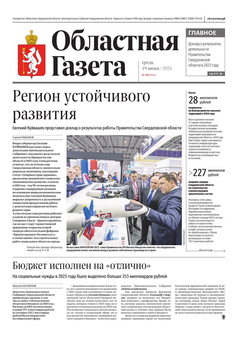 «Областная газета» № 130 (9941) от 19 июня 2024 года