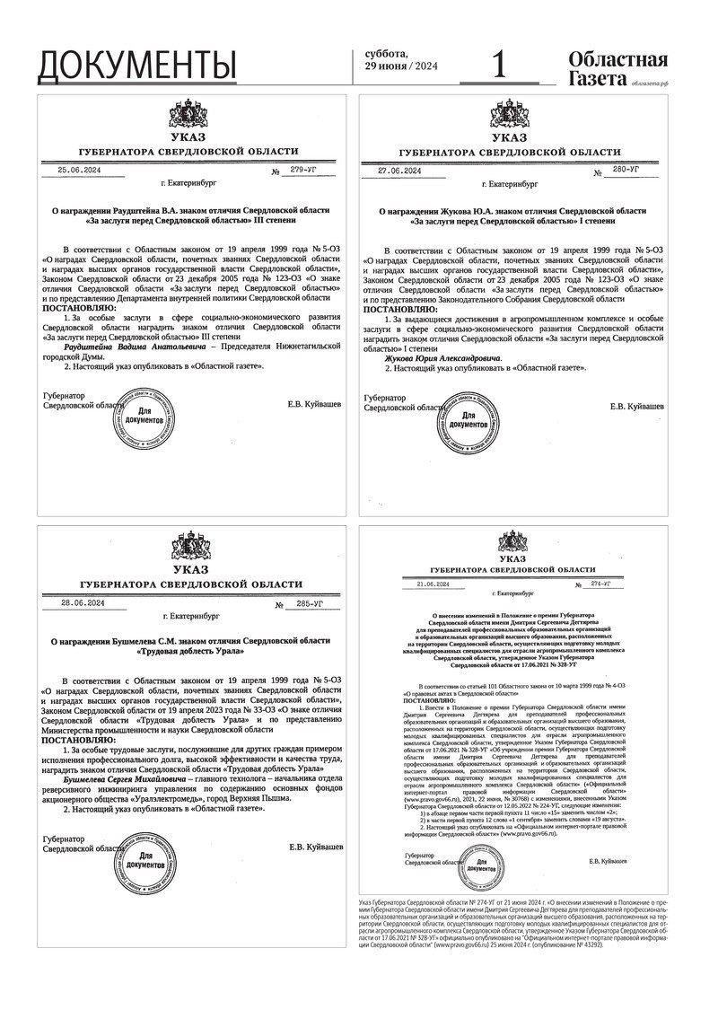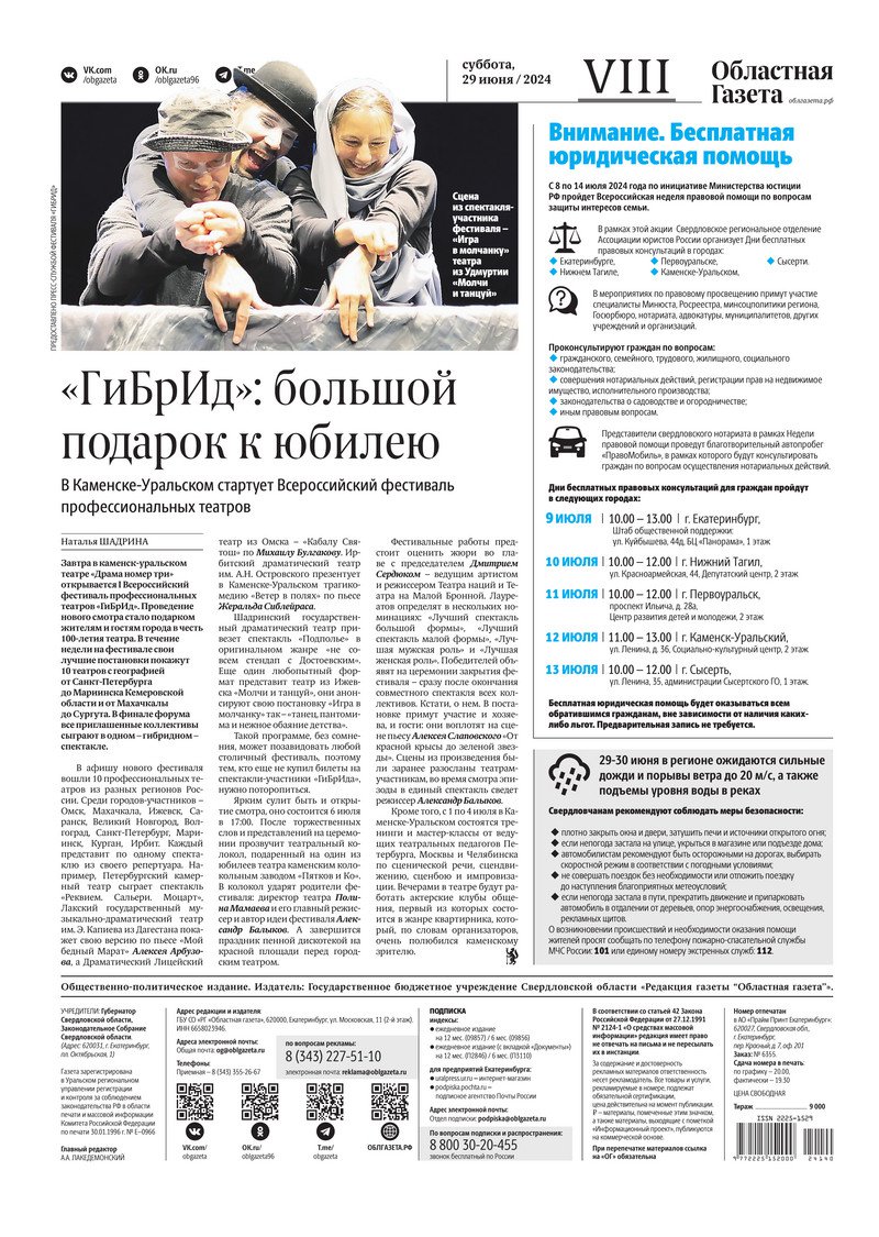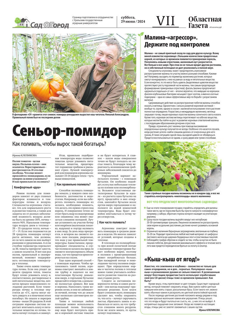 «Областная газета» № 140 (9951) от 29 июня 2024 года