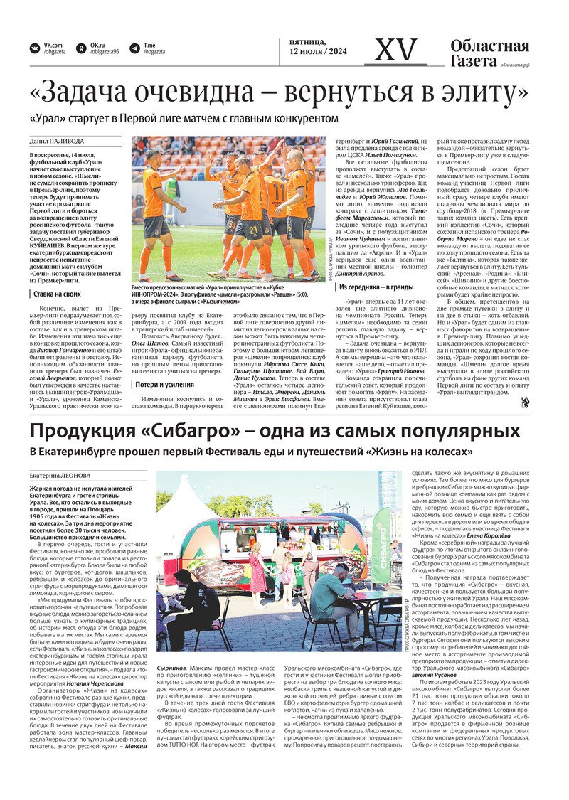 «Областная газета» № 151 (9962) от 11 июля 2024 года