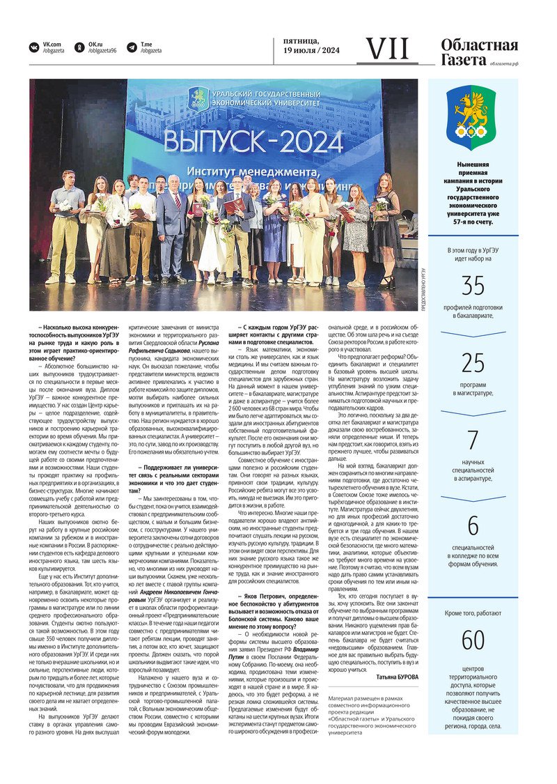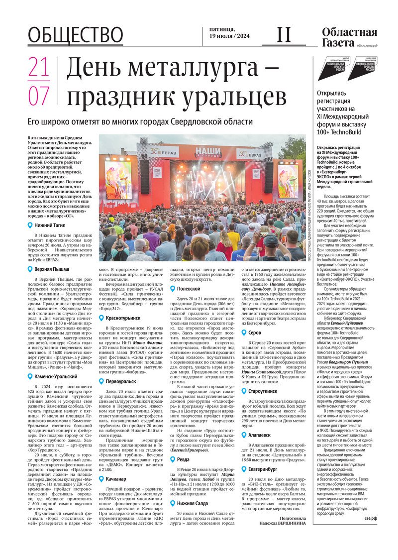 «Областная газета» № 156 (9967) от 19 июля 2024 года