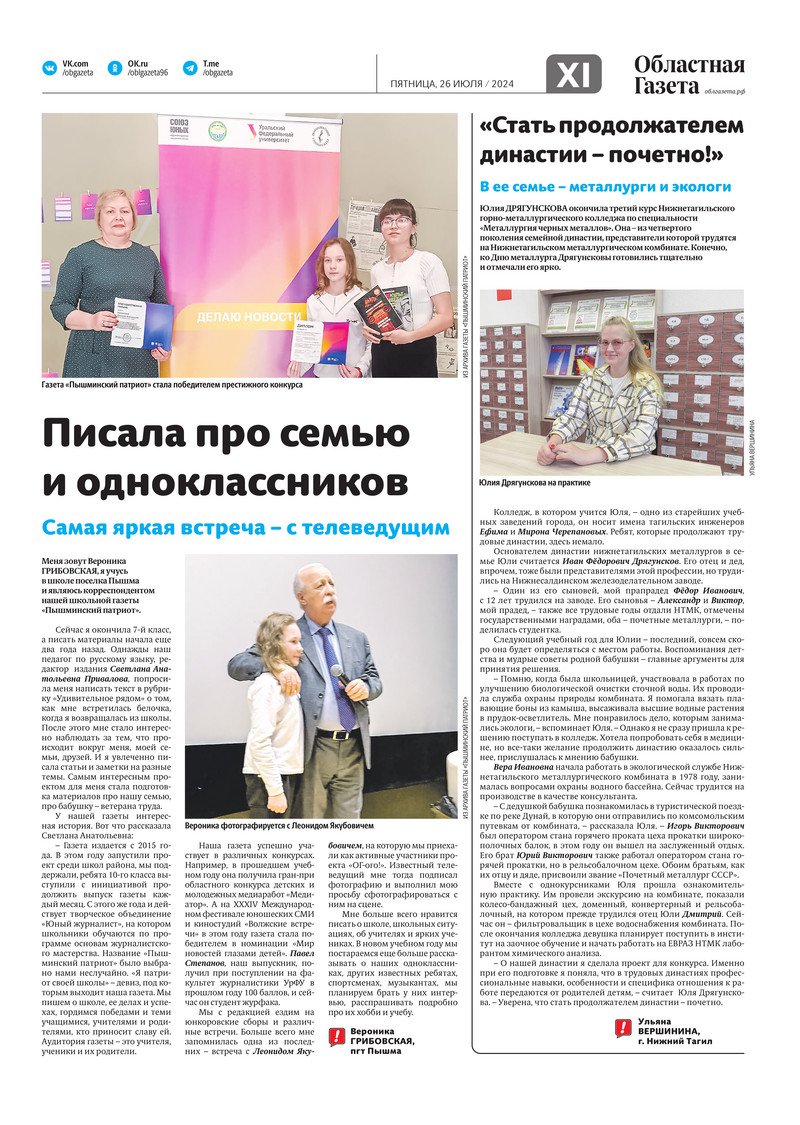 «Областная газета» № 163 (9974) от 25 июля 2024 года