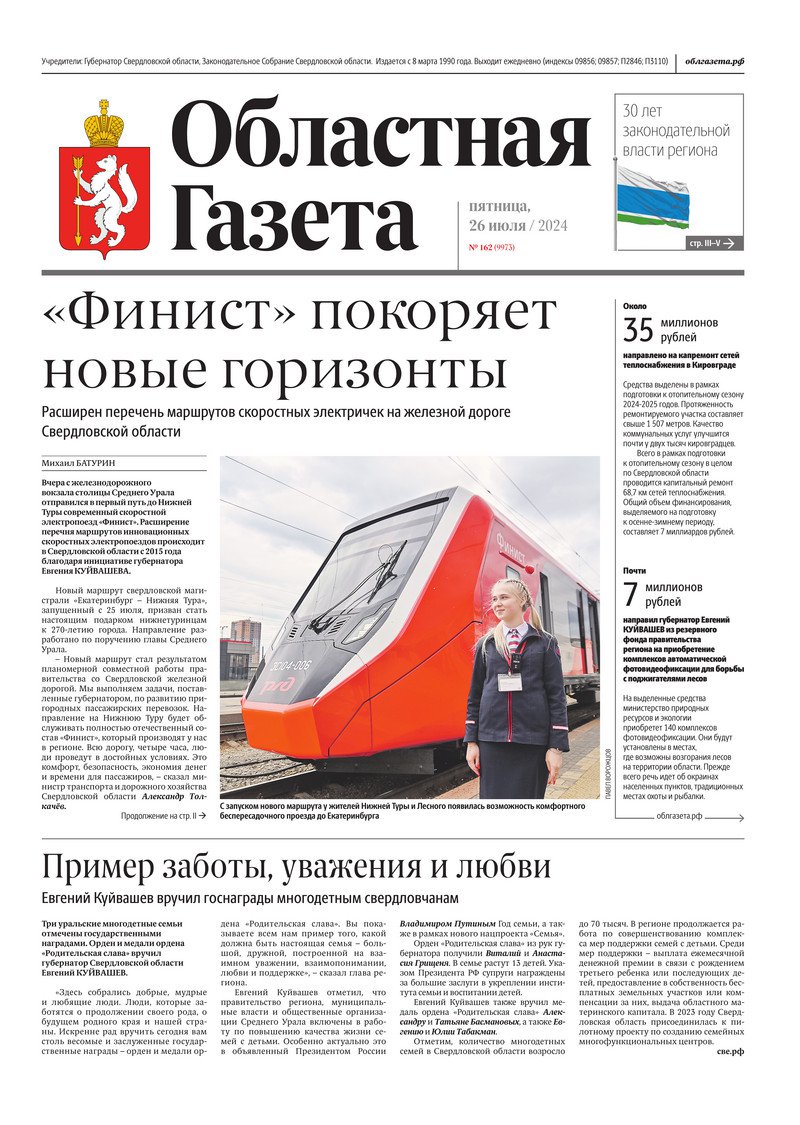 «Областная газета» № 162 (9973) от 26 июля 2024 года