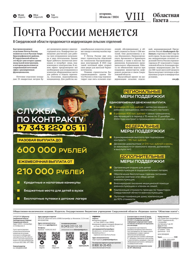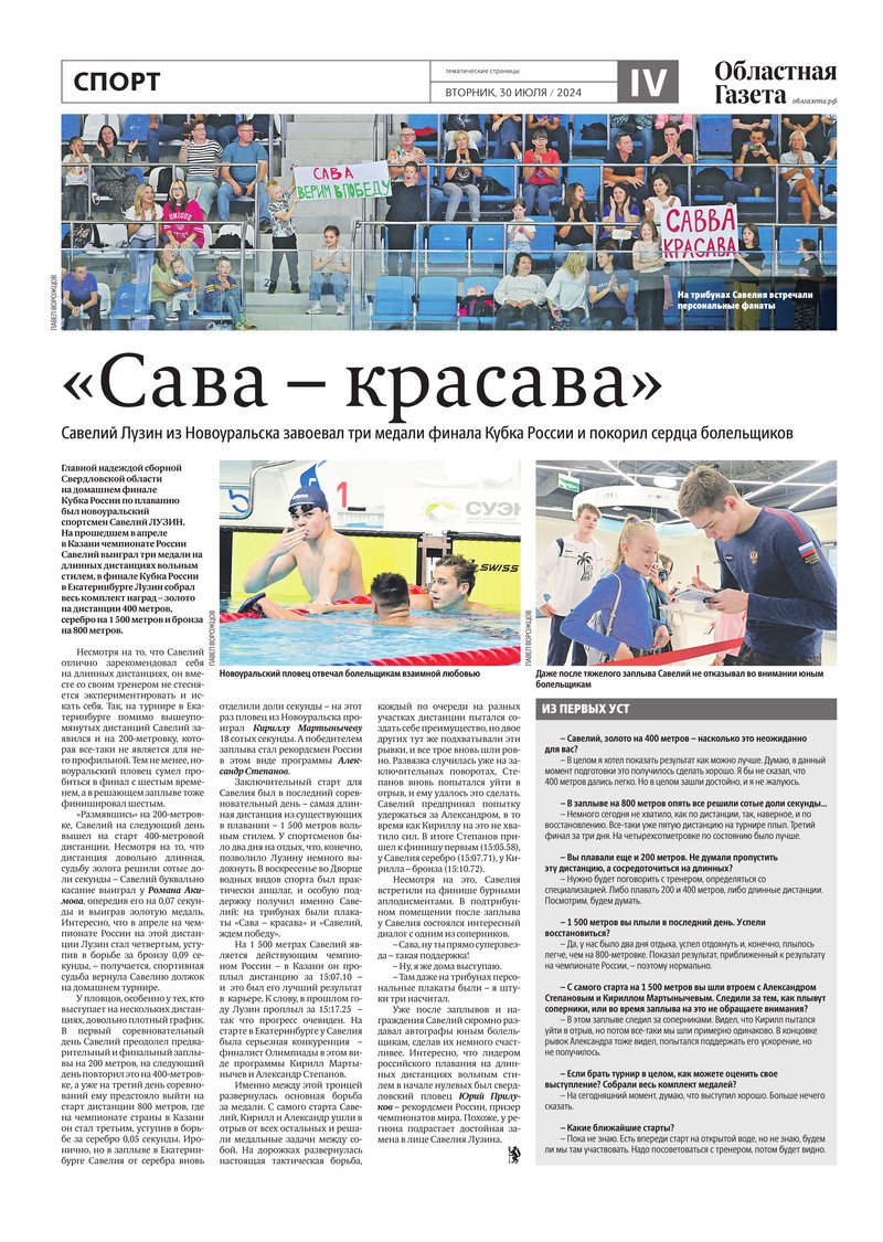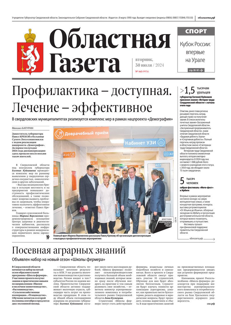 «Областная газета» № 165 (9976) от 30 июля 2024 года