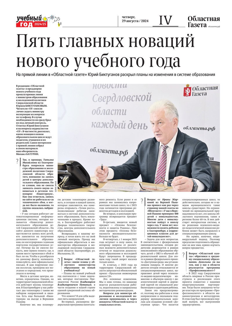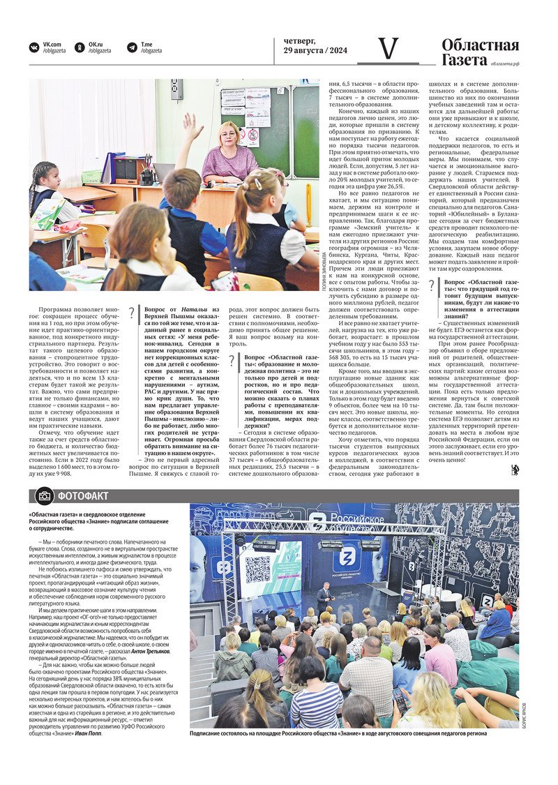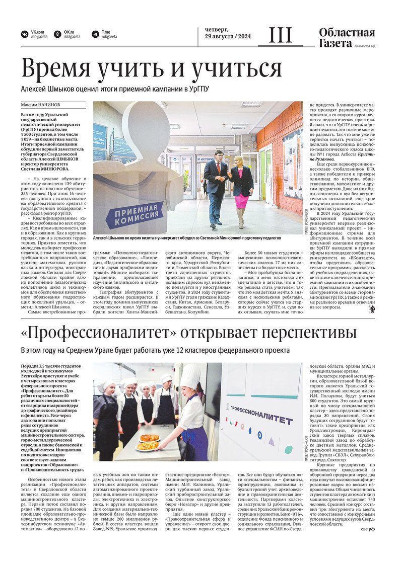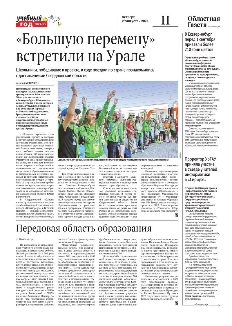 «Областная газета» № 191 (10002) от 29 августа 2024 года