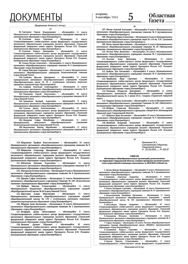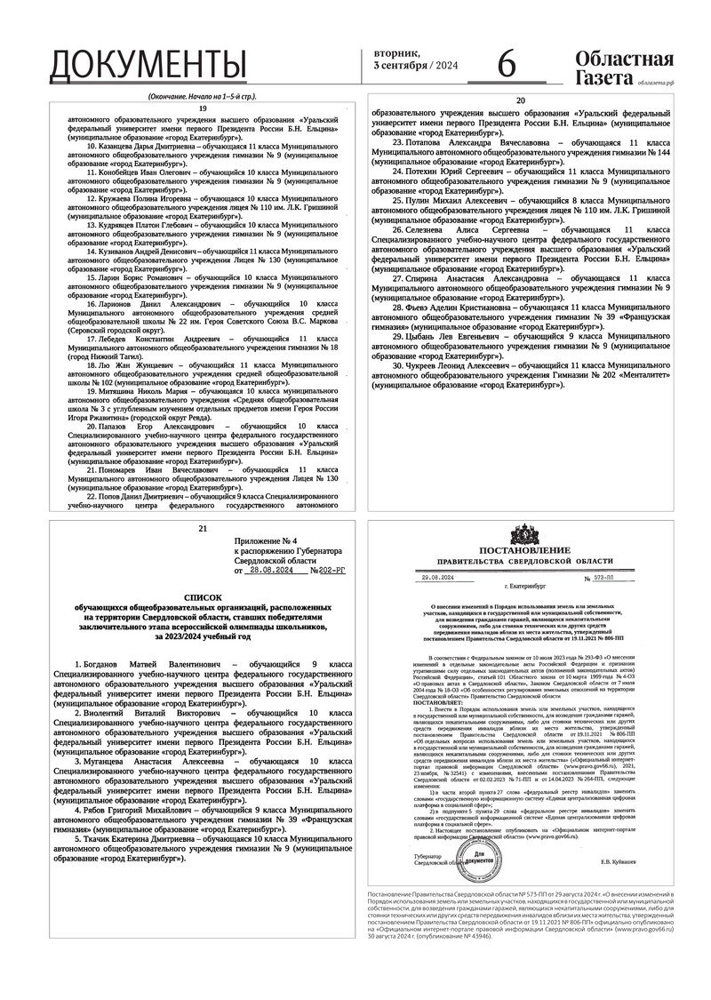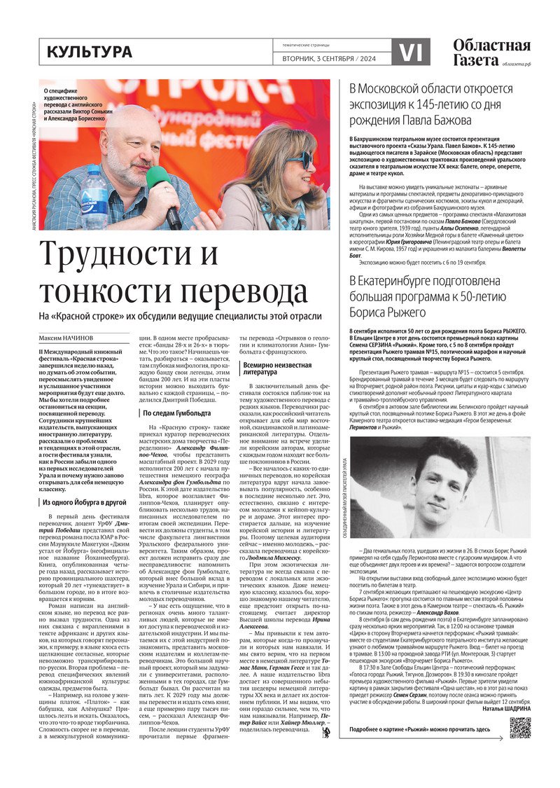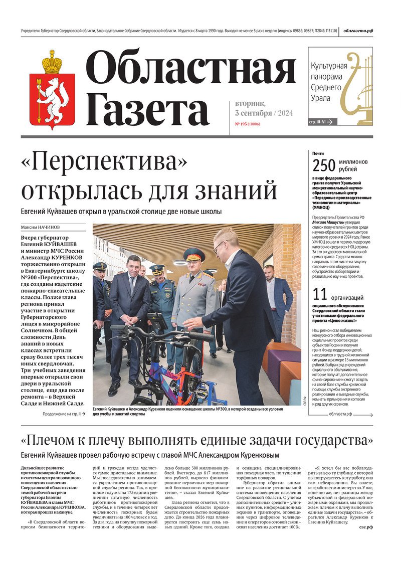 «Областная газета» № 195 (10006) от 3 сентября 2024 года