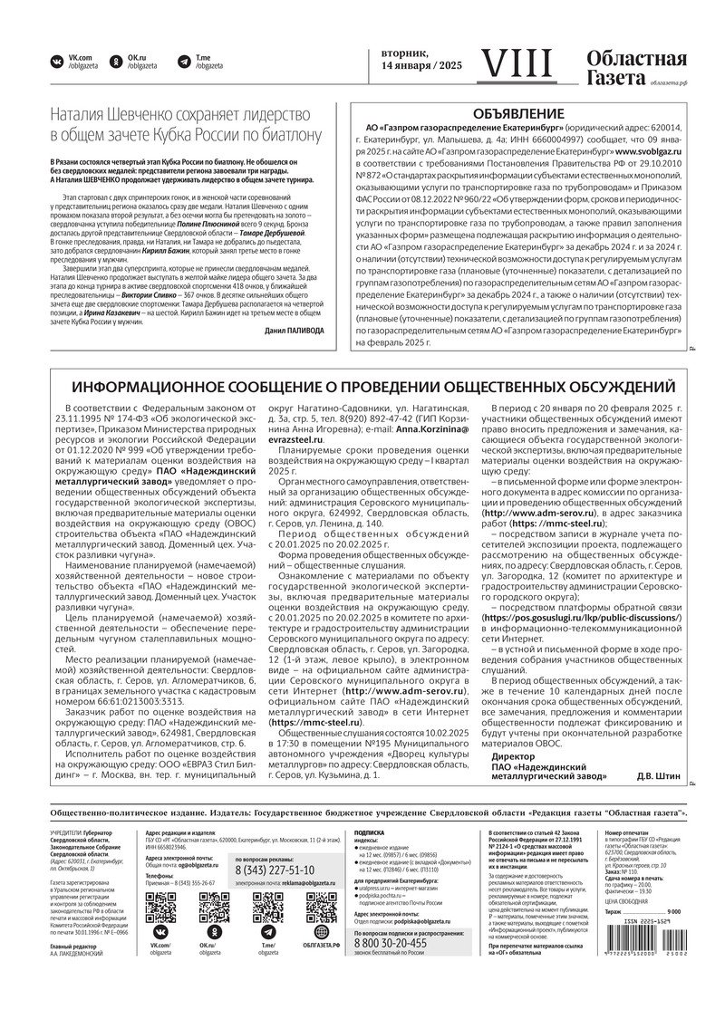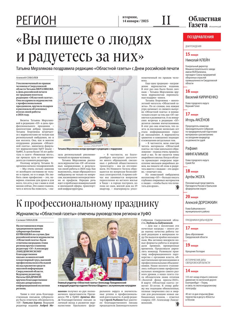 «Областная газета» № 2 (10109) от 14 января 2025 года