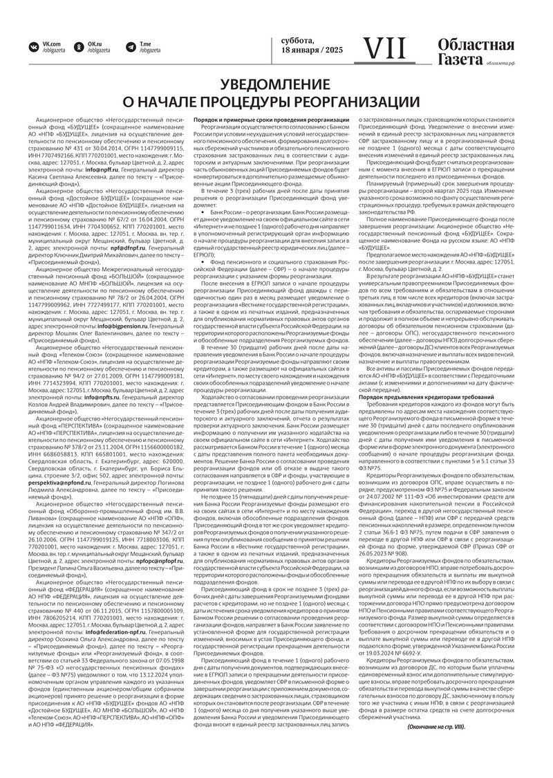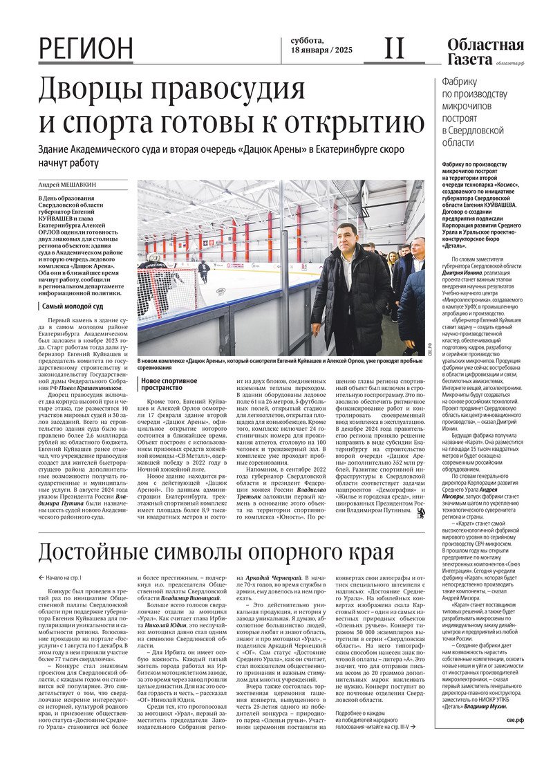 «Областная газета» № 7 (10114) от 18 января 2025 года