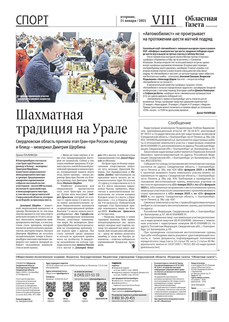 «Областная газета» № 8 (10115) от 21 января 2025 года