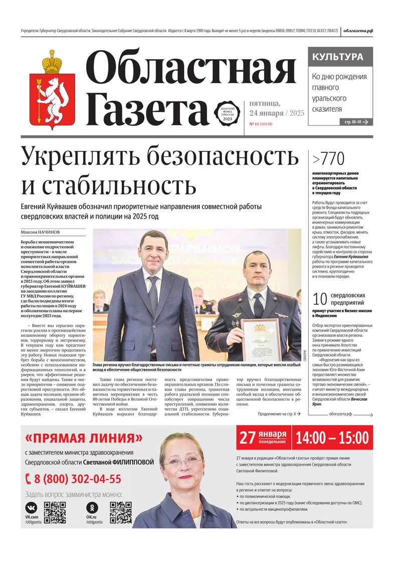 «Областная газета» № 11 (10118) от 24 января 2025 года