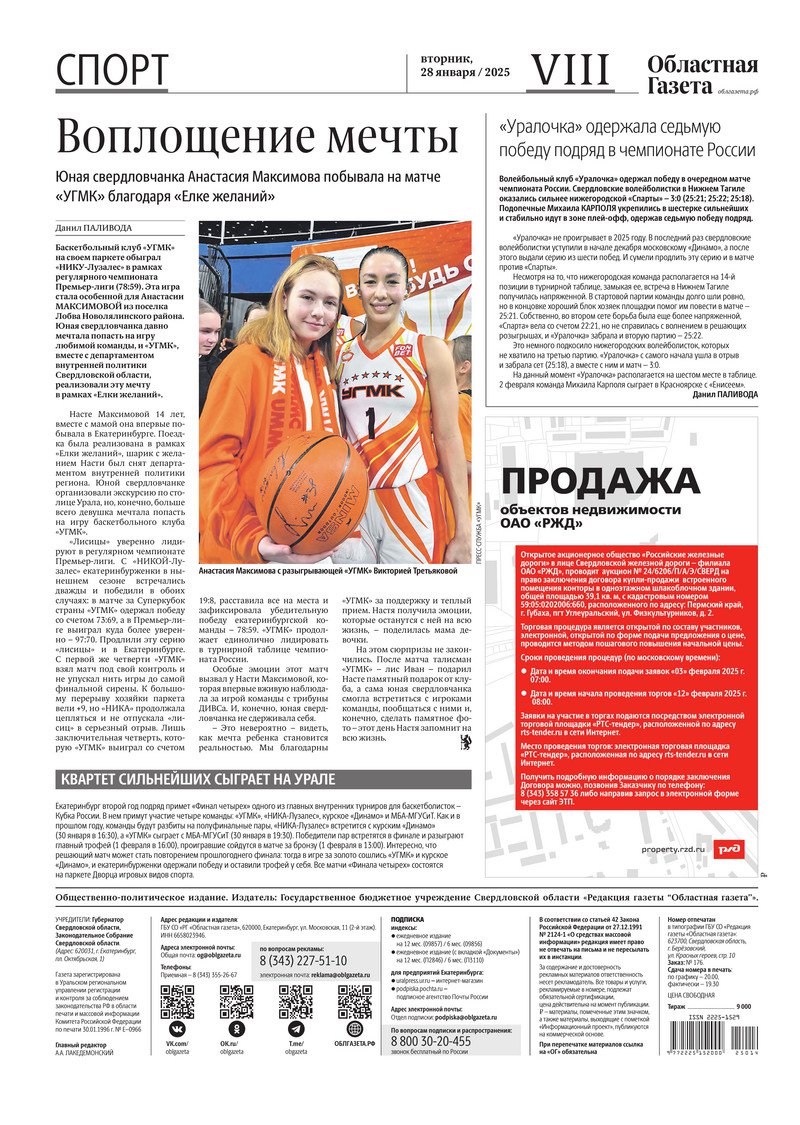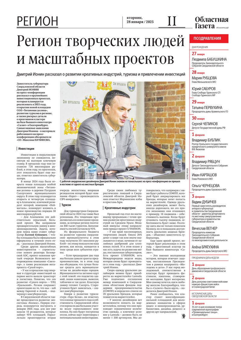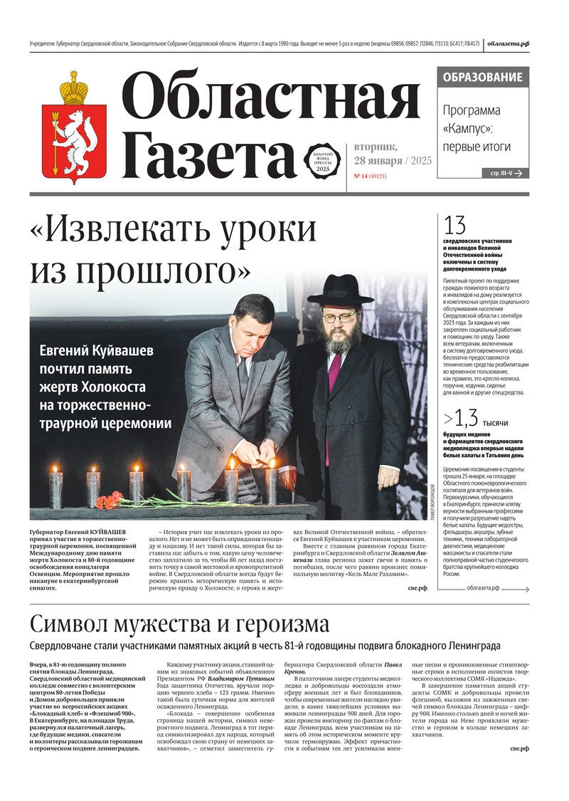 «Областная газета» № 14 (10121) от 28 января 2025 года