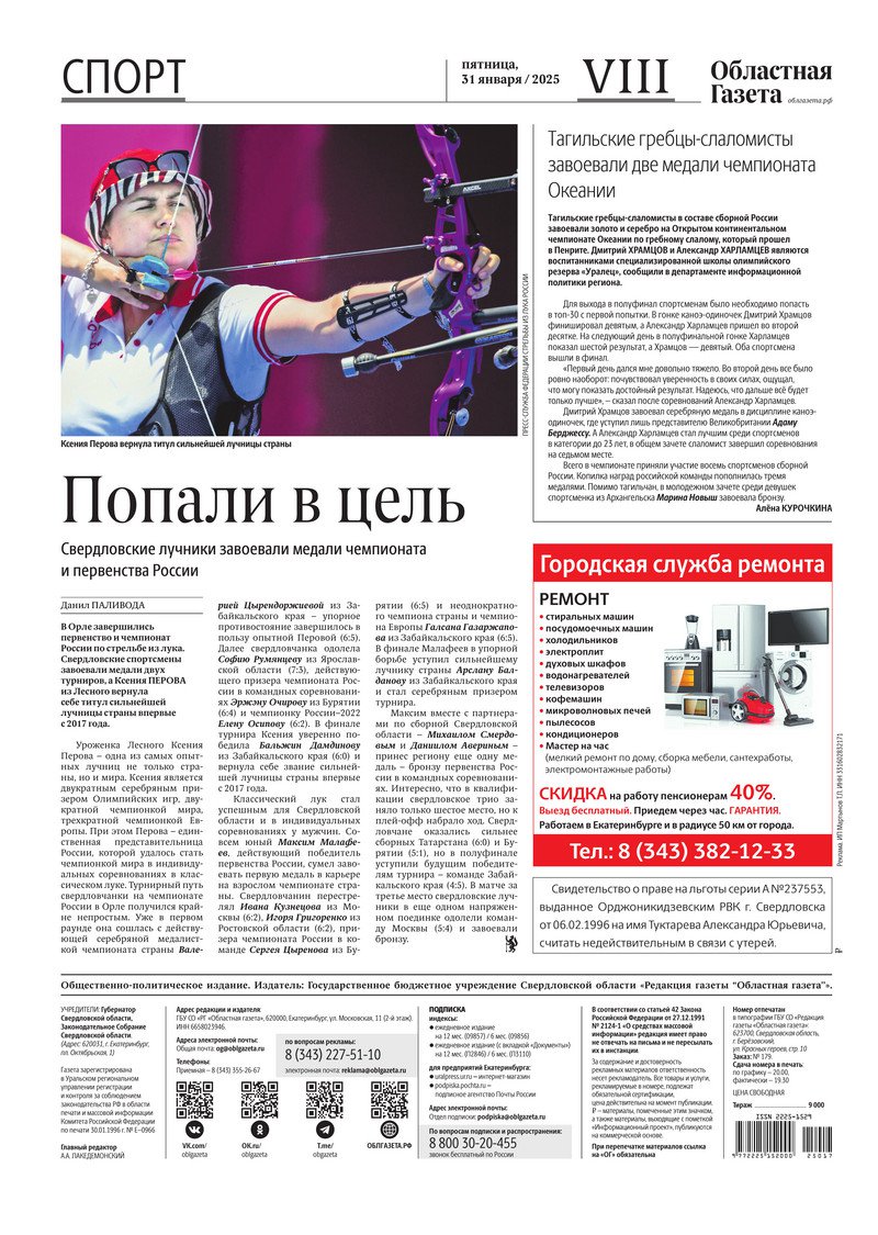 «Областная газета» № 17 (10124) от 31 января 2025 года