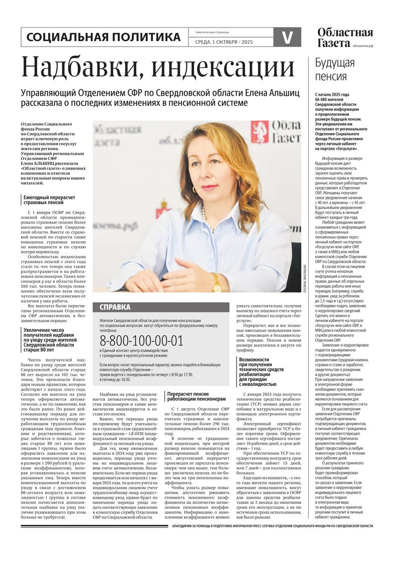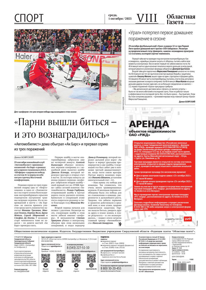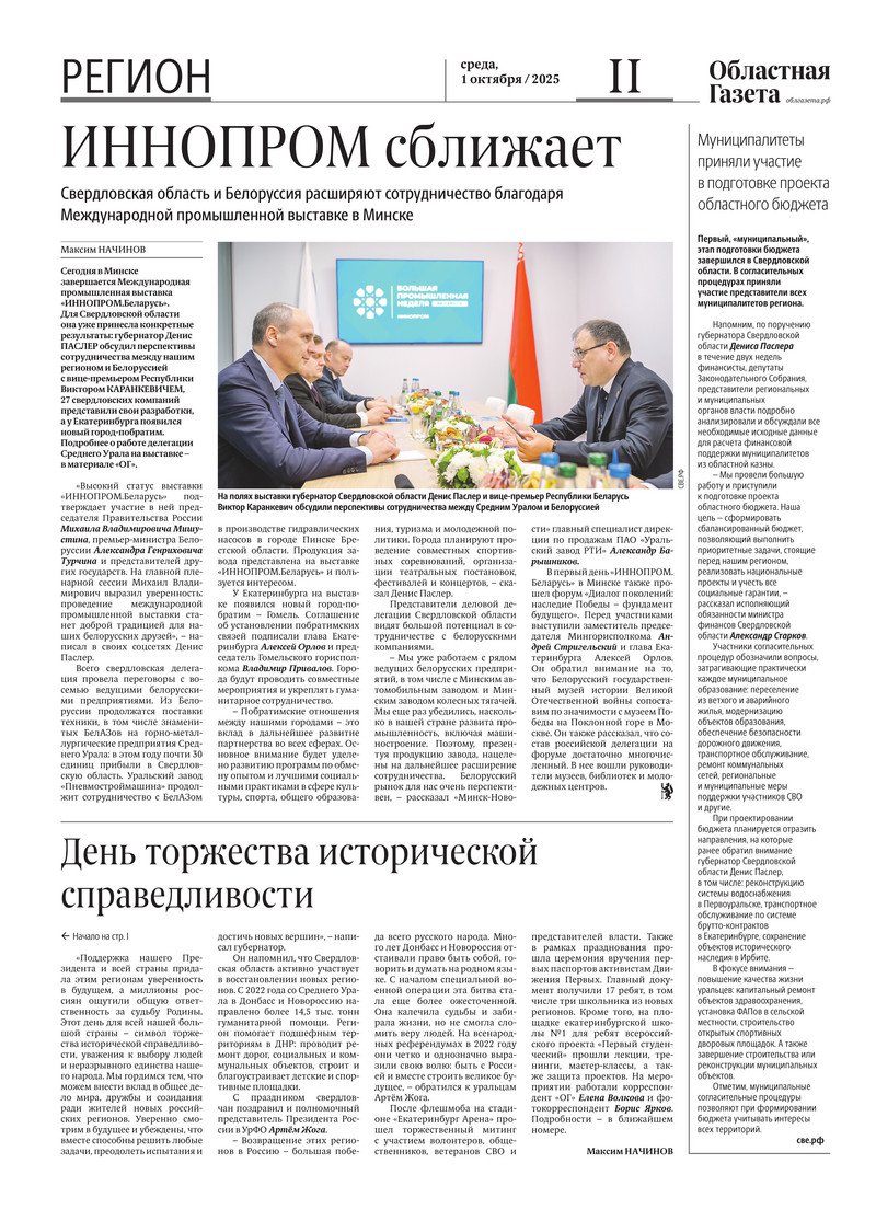 «Областная газета» № 218 (10325) от 1 октября 2025 года