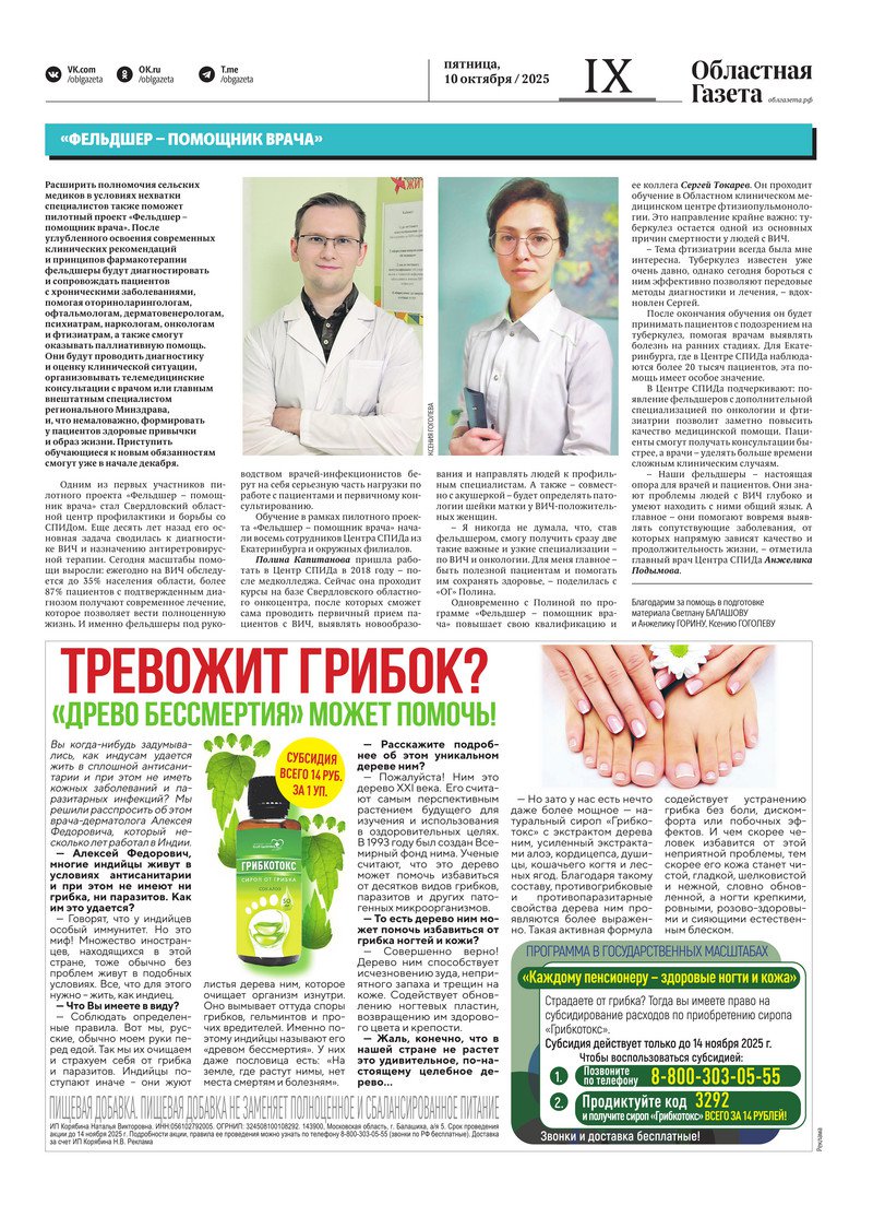 «Областная газета» № 227 (10334) от 10 октября 2025 года