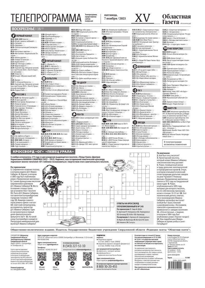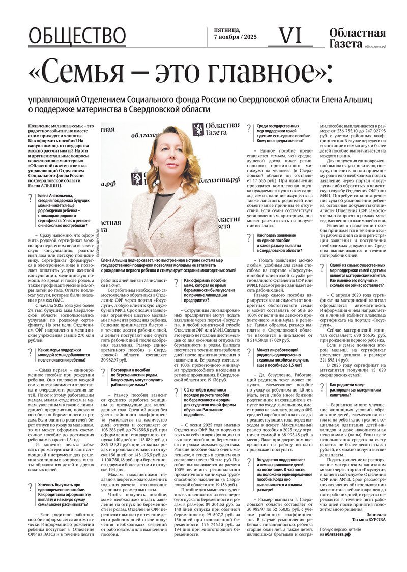 «Областная газета» № 249 (10356) от 7 ноября 2025 года