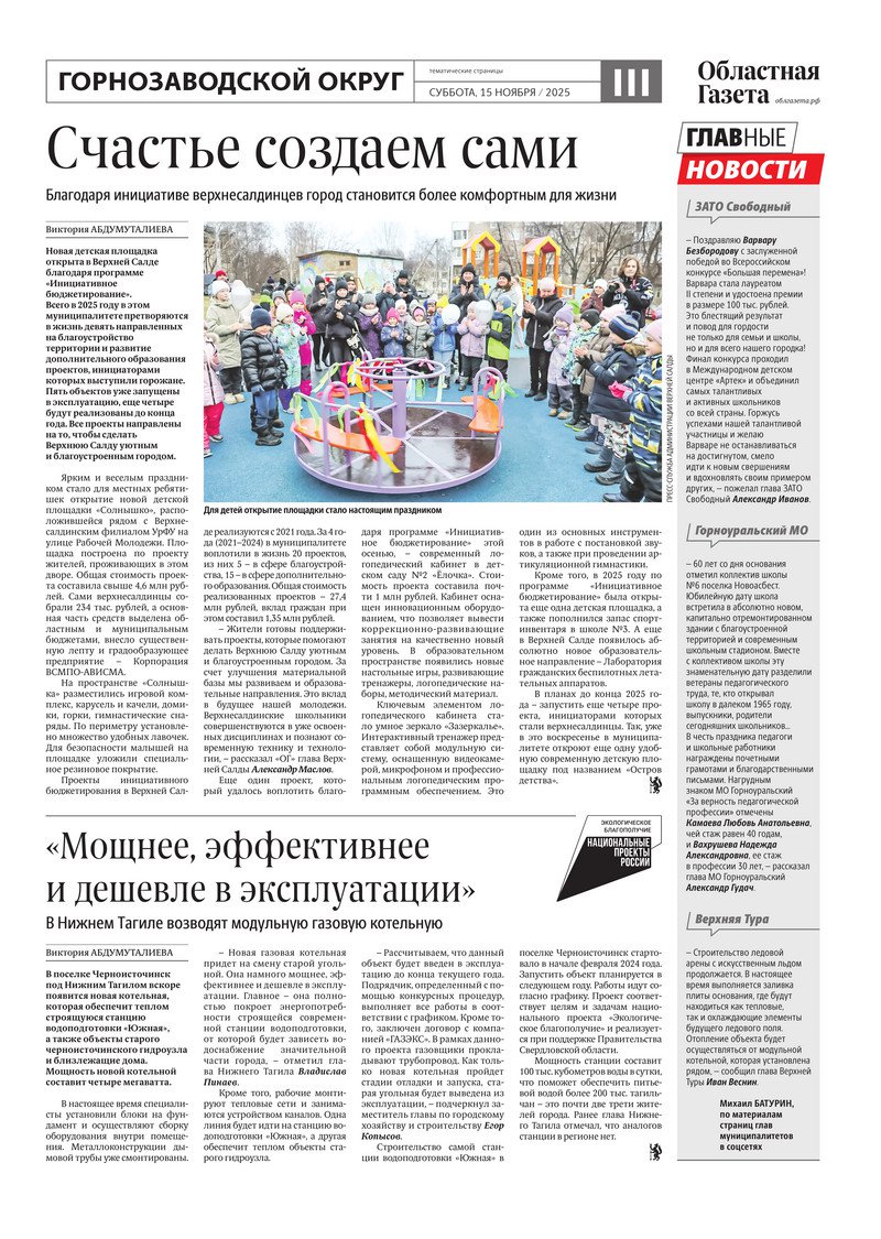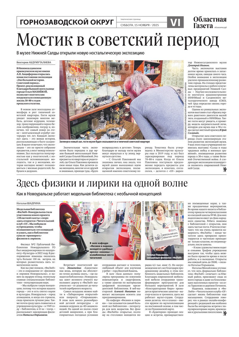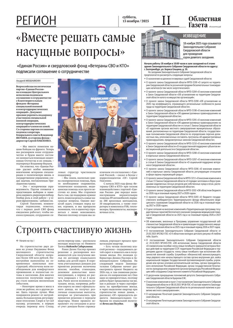 «Областная газета» № 256 (10363) от 15 ноября 2025 года