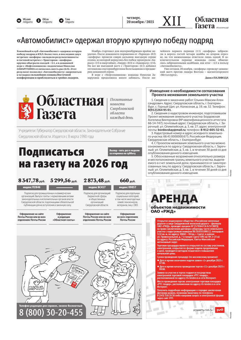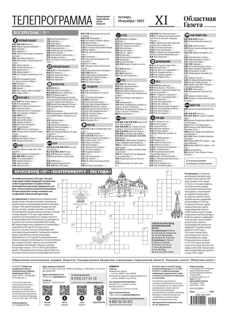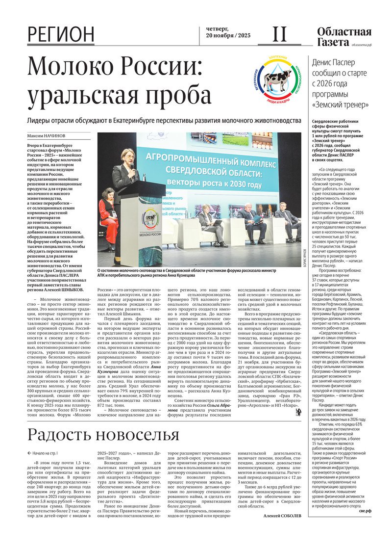«Областная газета» № 259 (10366) от 20 ноября 2025 года