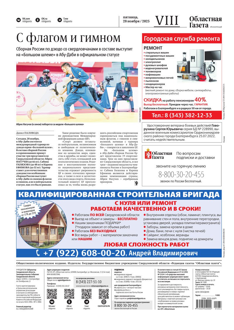 «Областная газета» № 266 (10373) от 28 ноября 2025 года