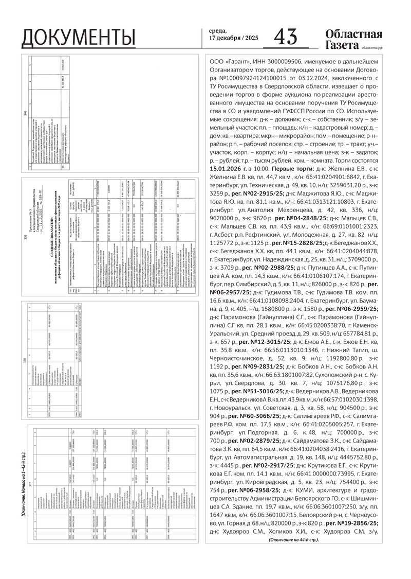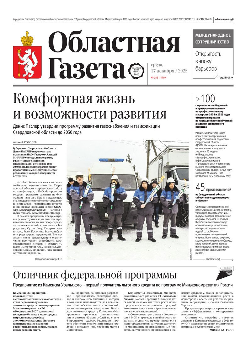 «Областная газета» № 282 (10389) от 17 декабря 2025 года
